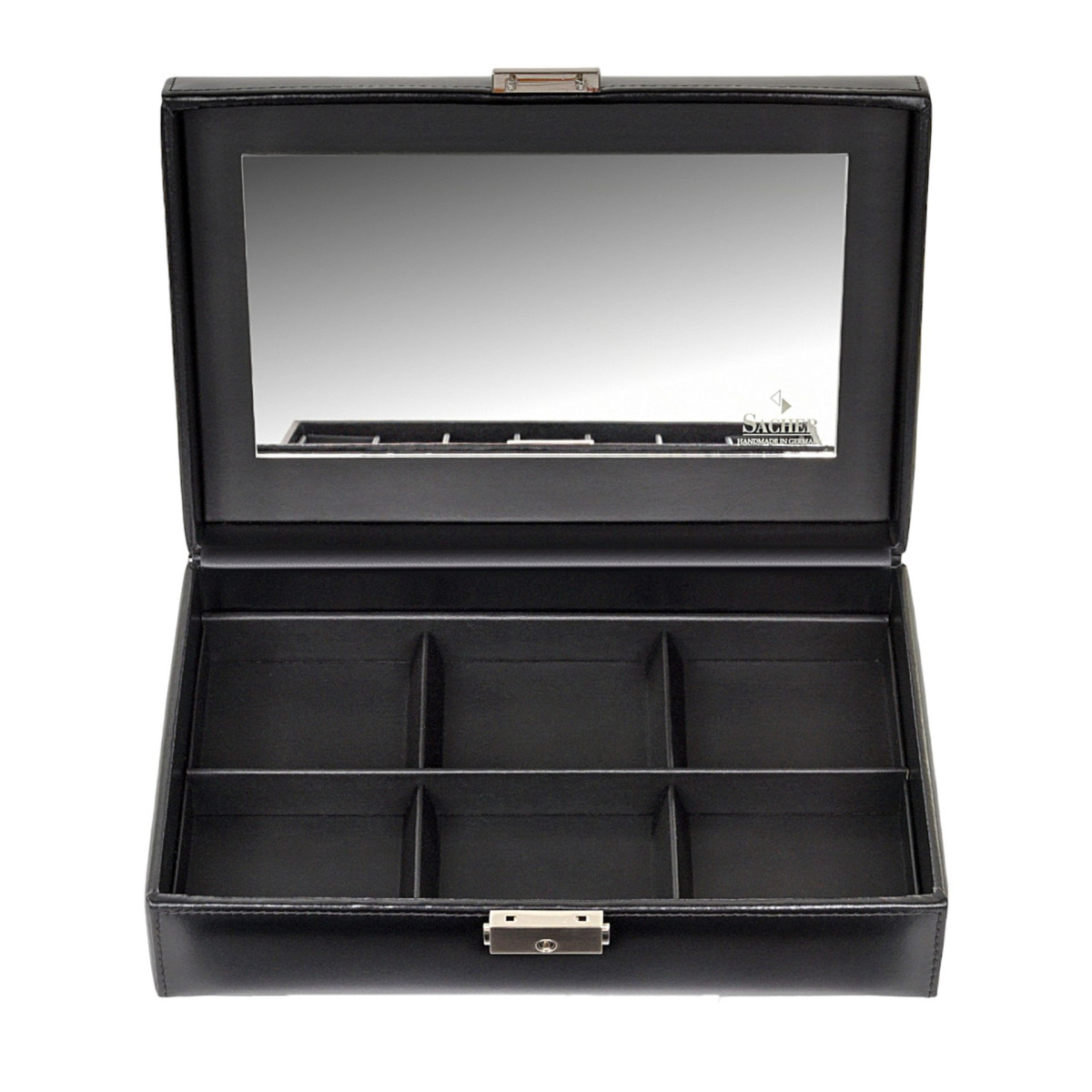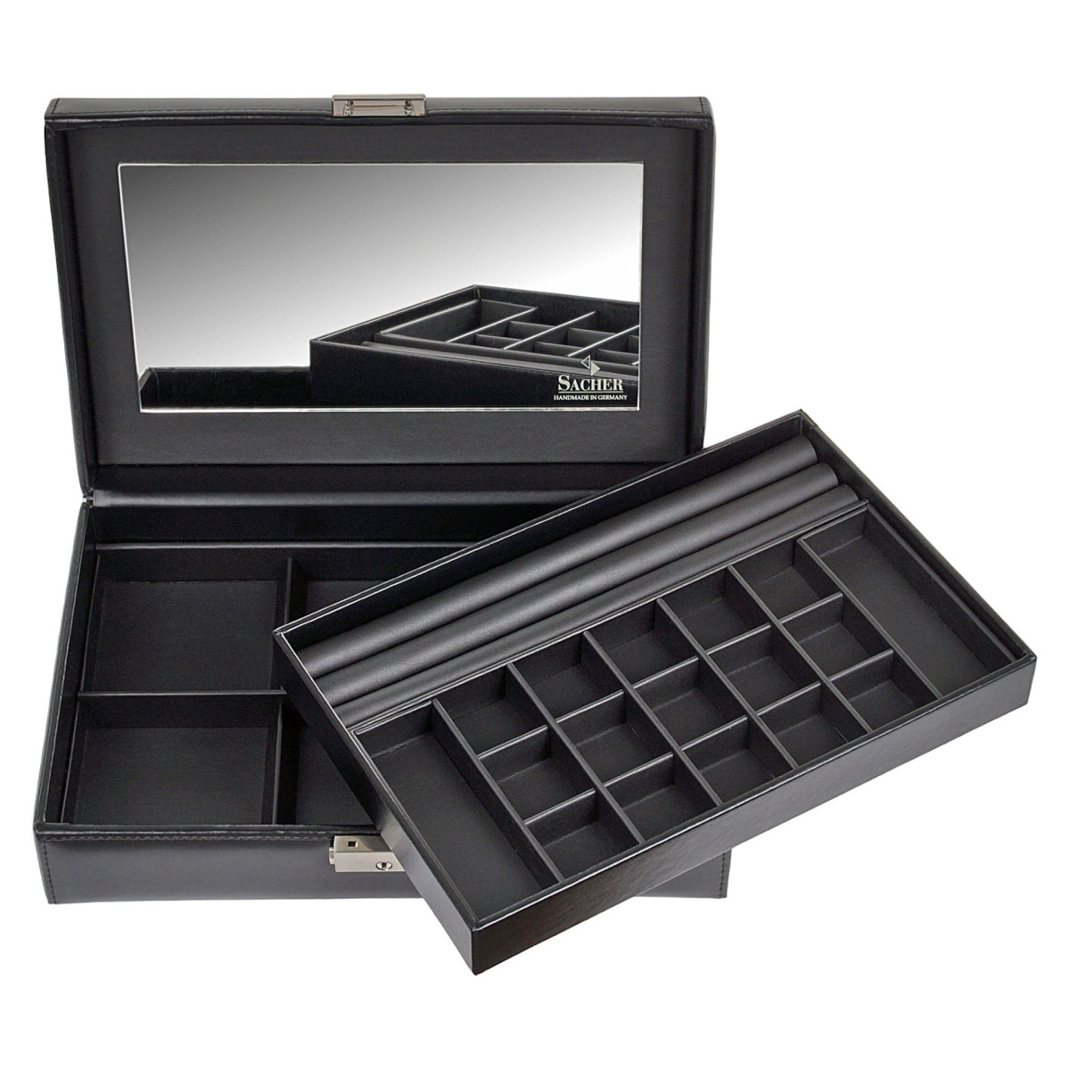 Η κοσμηματοθήκη μας είναι η ιδανική λύση για την ασφαλή και κομψή αποθήκευση των πολύτιμων κοσμημάτων σας. Αυτή η συμπαγής κοσμηματοθήκη προσφέρει αρκετό χώρο για πολλά είδη κοσμημάτων, όπως δαχτυλίδια, μανικετόκουμπα, βραχιόλια κ.λπ. Με τον κομψό σχεδιασμό και τα ανθεκτικά υλικά της, αποτελεί μια πρακτική και αισθητική προσθήκη στη συλλογή κοσμημάτων σας. 100% χειροποίητη στη Γερμανία.