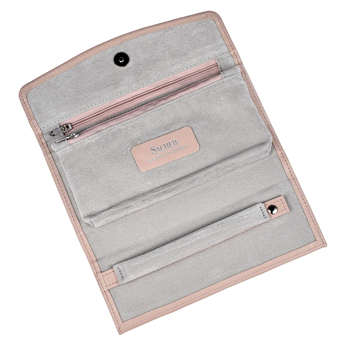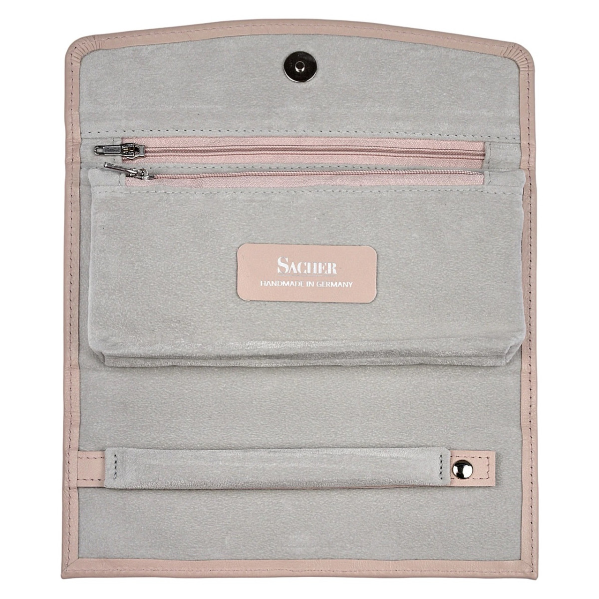 Κομψή θήκη κοσμημάτων ιδανική για ταξίδι ή χρηματοκιβώτιο. Ασφαλής και πρακτική αποθήκευση κοσμημάτων. Είτε σε επαγγελματικά ταξίδια είτε στο σπίτι, τα κοσμήματά σας είναι πάντα τέλεια προστατευμένα. Δέρμα - εκλεκτό ιταλικό δέρμα σε ματ φινίρισμα με απαλή αίσθηση.