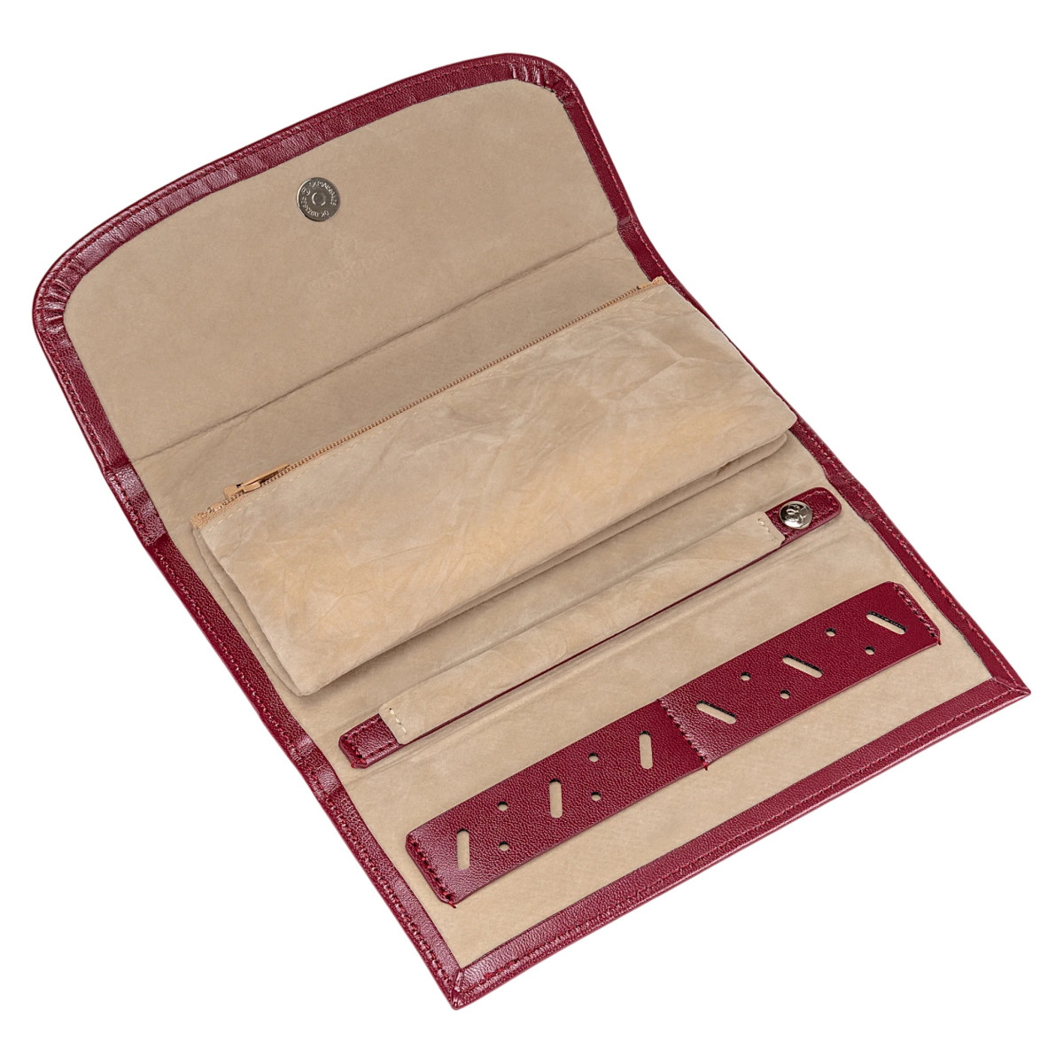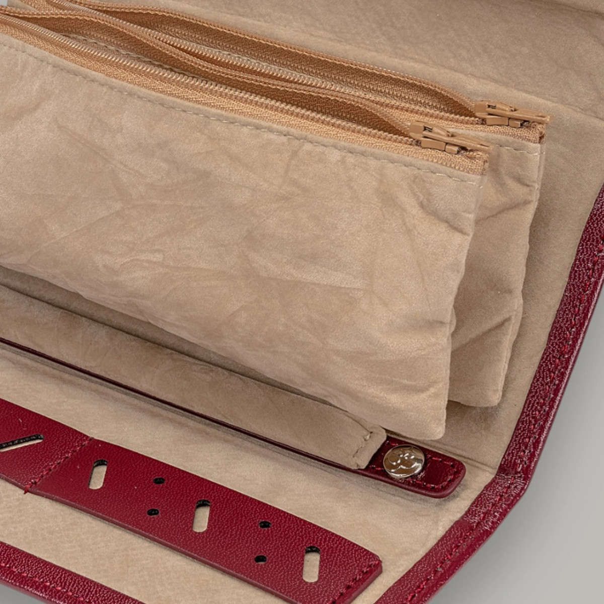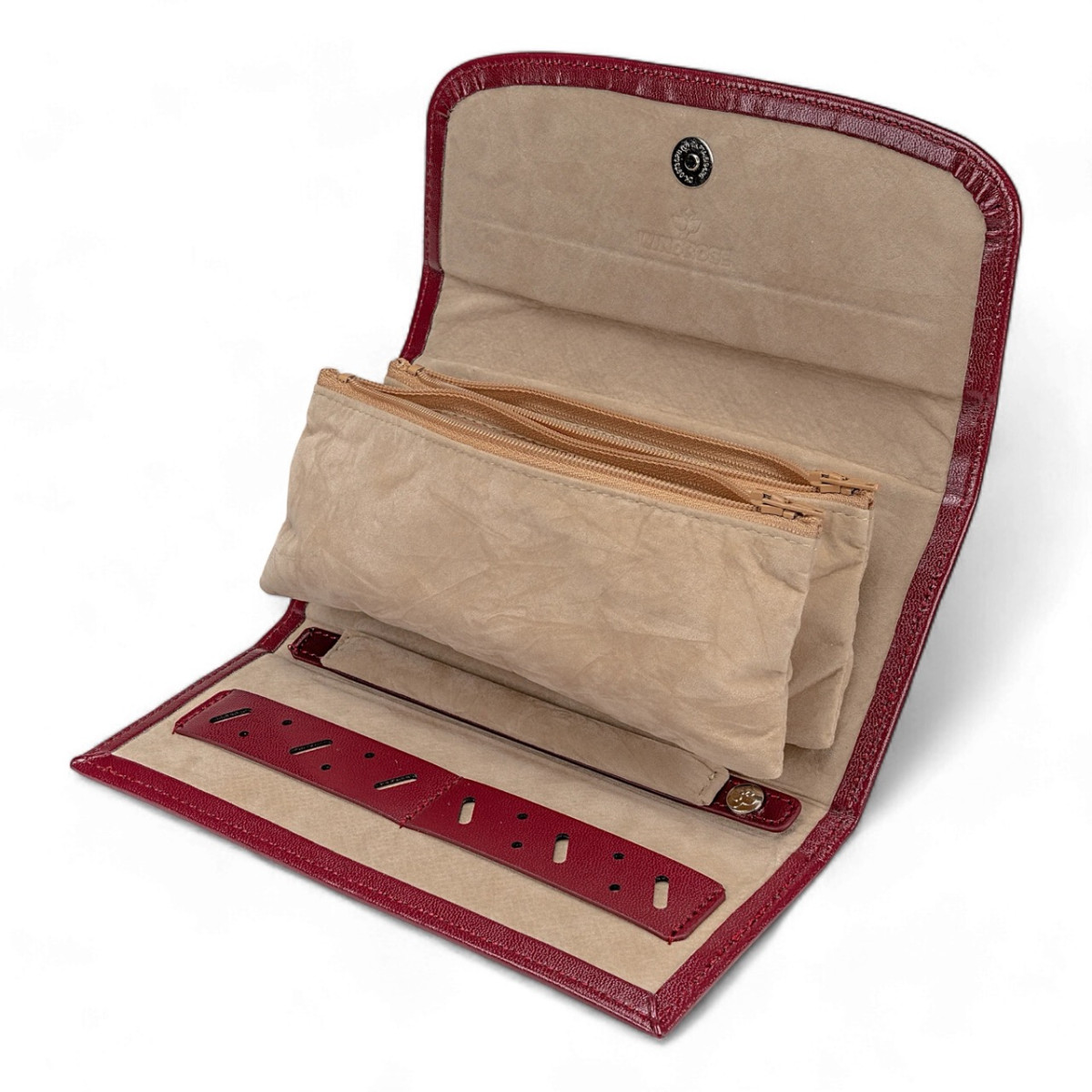 Κομψή θήκη κοσμημάτων ιδανική για ταξίδι ή χρηματοκιβώτιο. Ασφαλής και πρακτική αποθήκευση κοσμημάτων. Είτε σε επαγγελματικά ταξίδια είτε στο σπίτι, τα κοσμήματά σας είναι πάντα τέλεια προστατευμένα. Οικολογικό δέρμα.