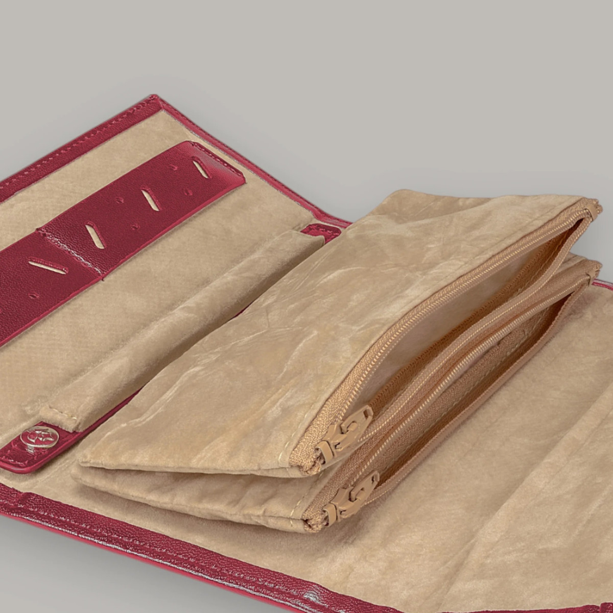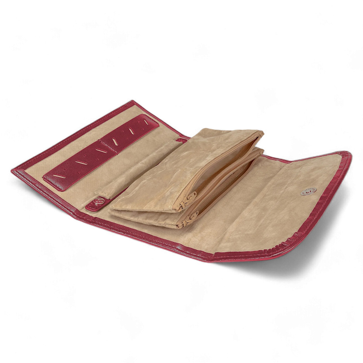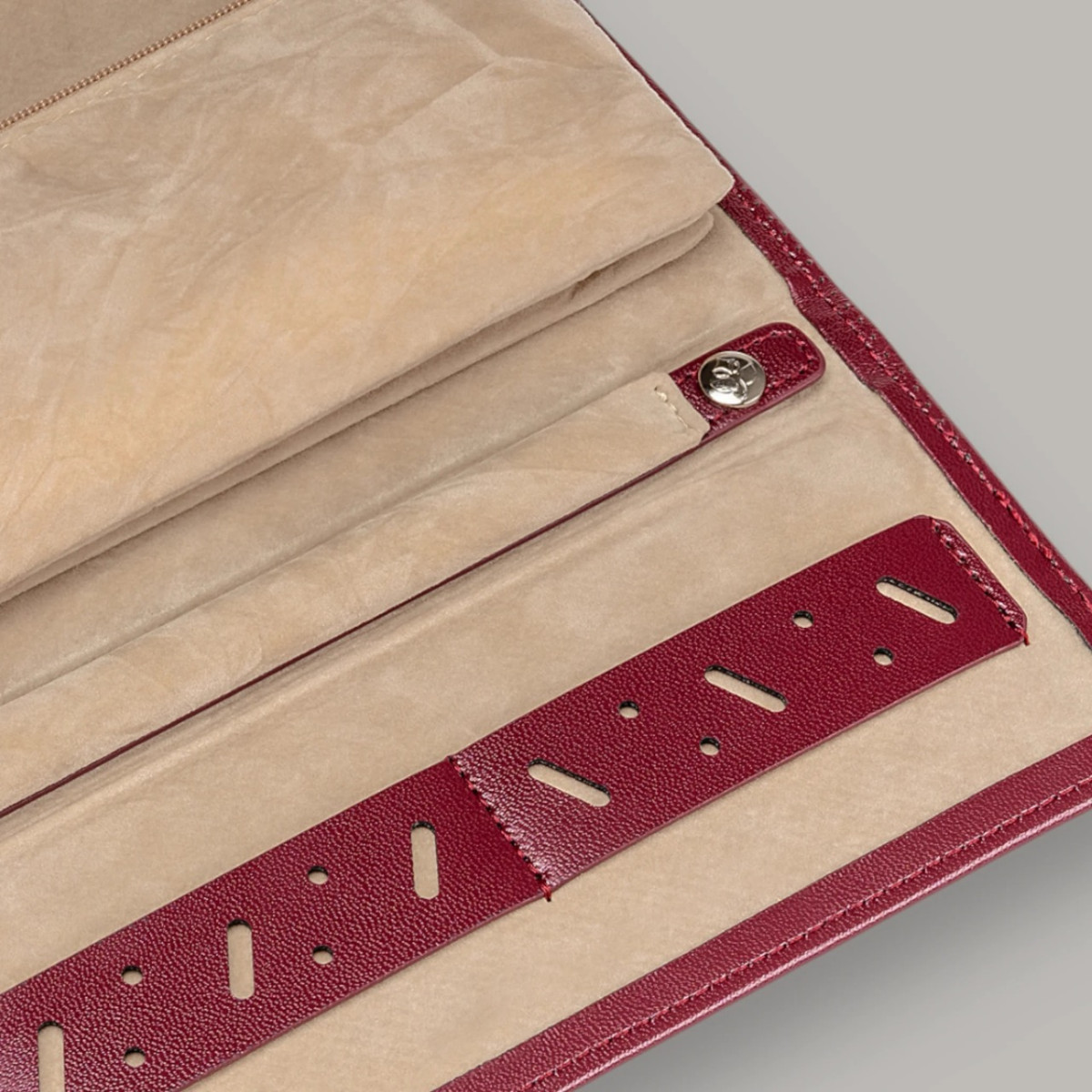 Κομψή θήκη κοσμημάτων ιδανική για ταξίδι ή χρηματοκιβώτιο. Ασφαλής και πρακτική αποθήκευση κοσμημάτων. Είτε σε επαγγελματικά ταξίδια είτε στο σπίτι, τα κοσμήματά σας είναι πάντα τέλεια προστατευμένα. Οικολογικό δέρμα.