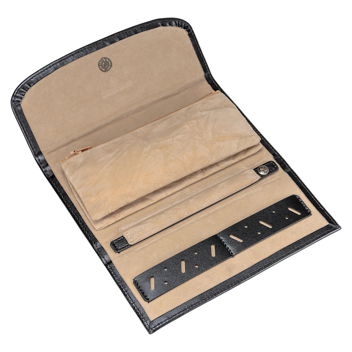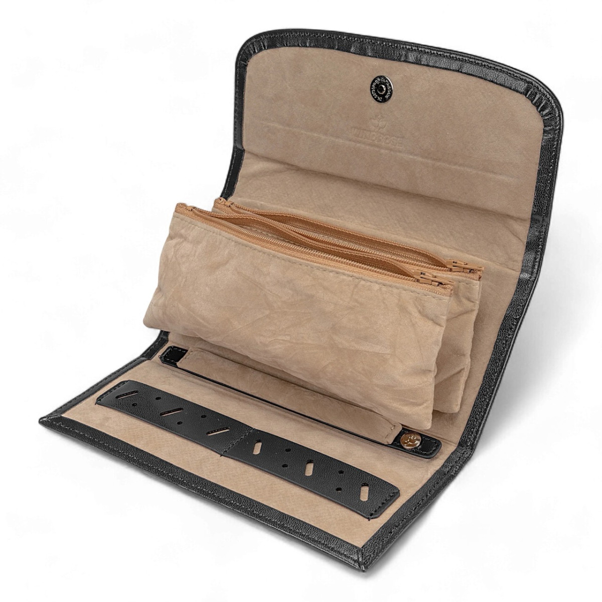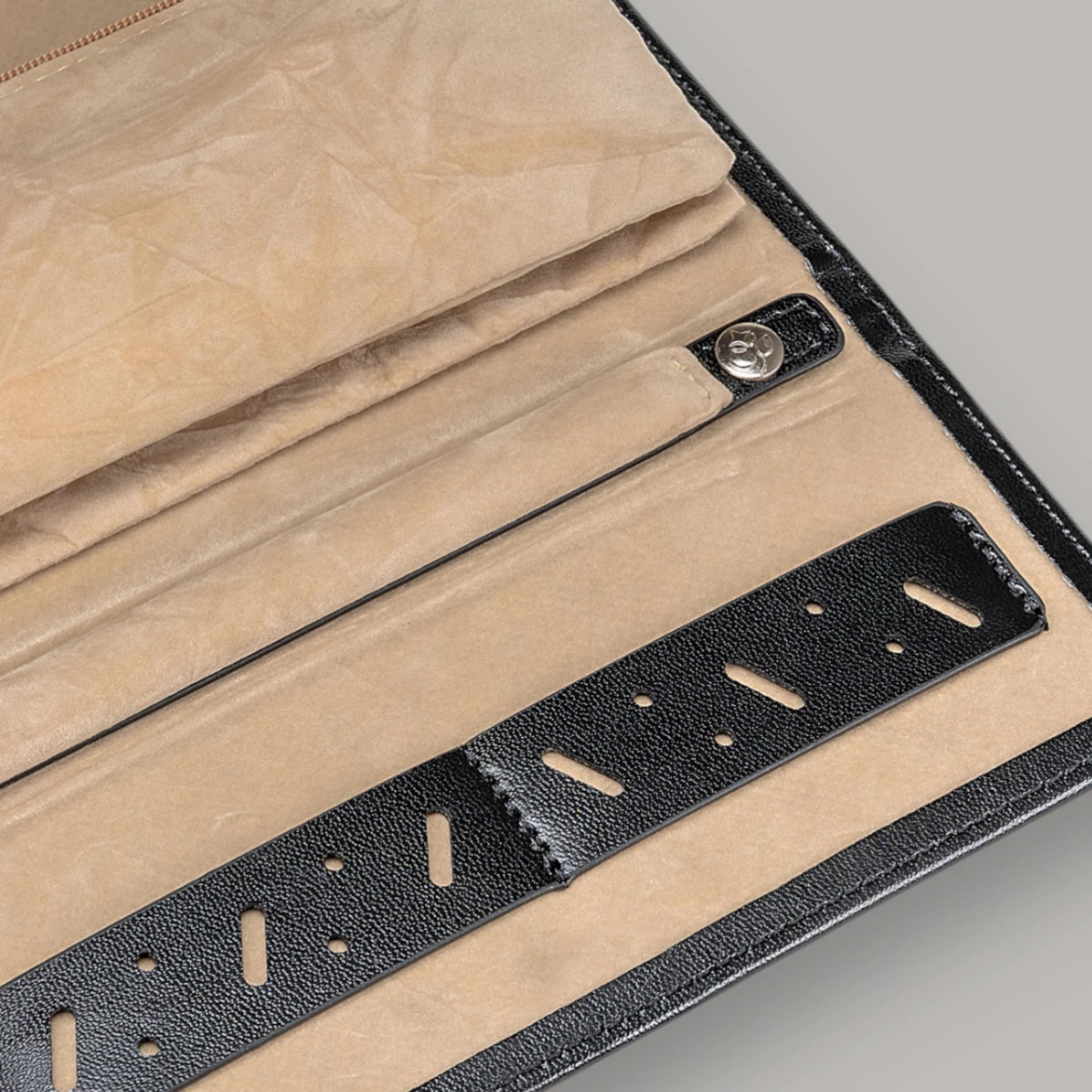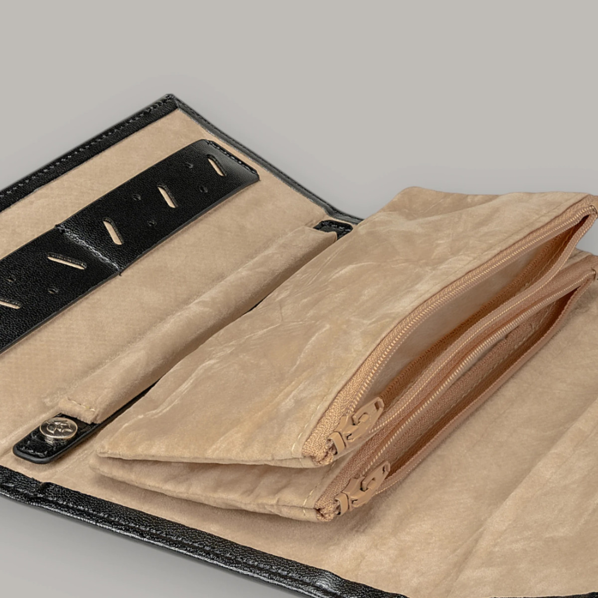 Κομψή θήκη κοσμημάτων ιδανική για ταξίδι ή χρηματοκιβώτιο. Ασφαλής και πρακτική αποθήκευση κοσμημάτων. Είτε σε επαγγελματικά ταξίδια είτε στο σπίτι, τα κοσμήματά σας είναι πάντα τέλεια προστατευμένα. Οικολογικό δέρμα.