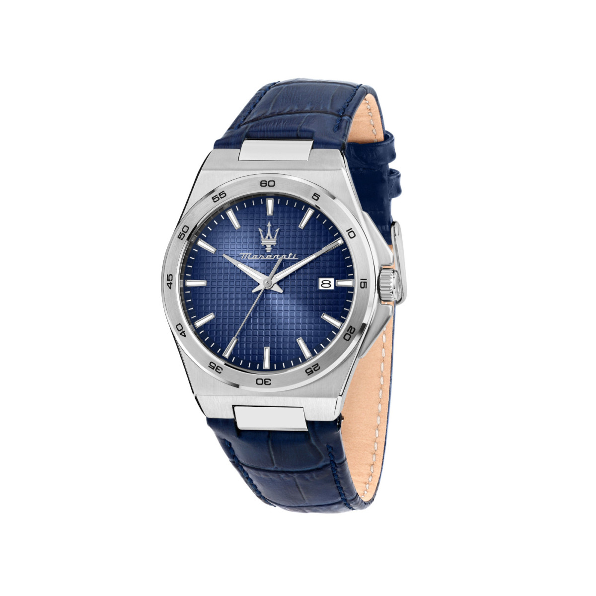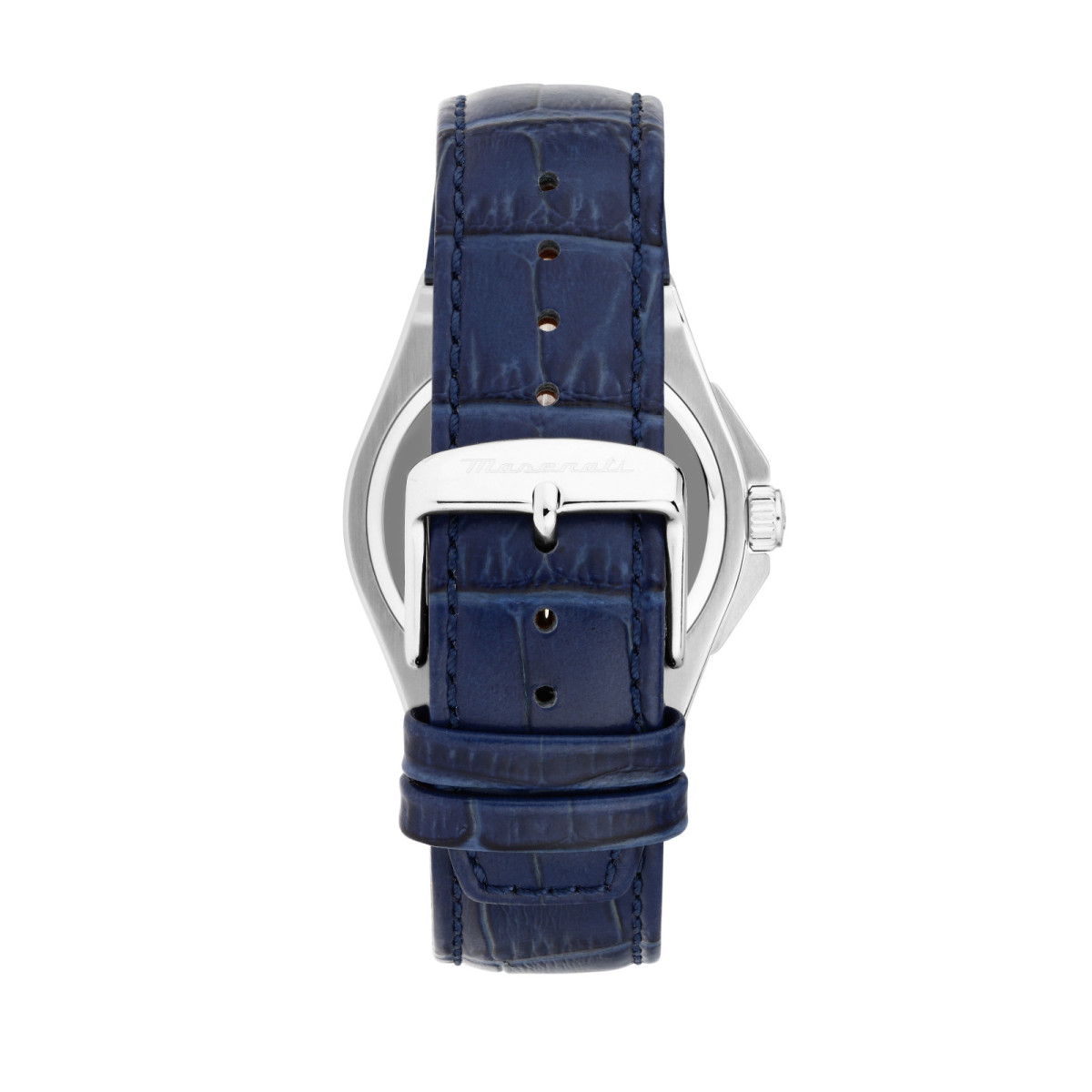 Ανδρικό ρολόι διαμέτρου 40mm με μηχανισμό QUARTZ ακριβείας. Έχει μπλε καντράν. Η κάσα του είναι από ανοξείδωτο ατσάλι και κρύσταλλο από ορυκτό κρύσταλλο ειδικής σκλήρυνσης. Έχει δερμάτινο λουράκι μπλε χρώματος.