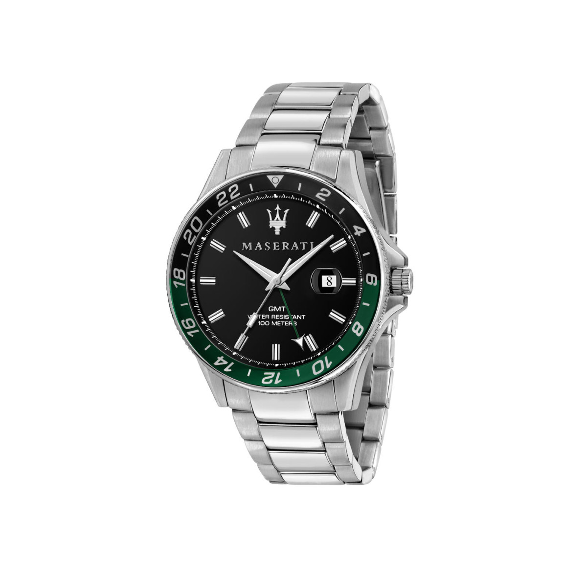 Ανδρικό ρολόι MASERATI διαμέτρου 44mm, με μηχανισμό Quartz ακριβείας. Έχει δίχρωμο καντράν, μαύρο και πράσινο με ασημένιους δείκτες και ένδειξη ημερομηνίας. Η κάσα του είναι από ανοξείδωτο ατσάλι. Έχει μπρασελέ από ανοξείδωτο ατσάλι.