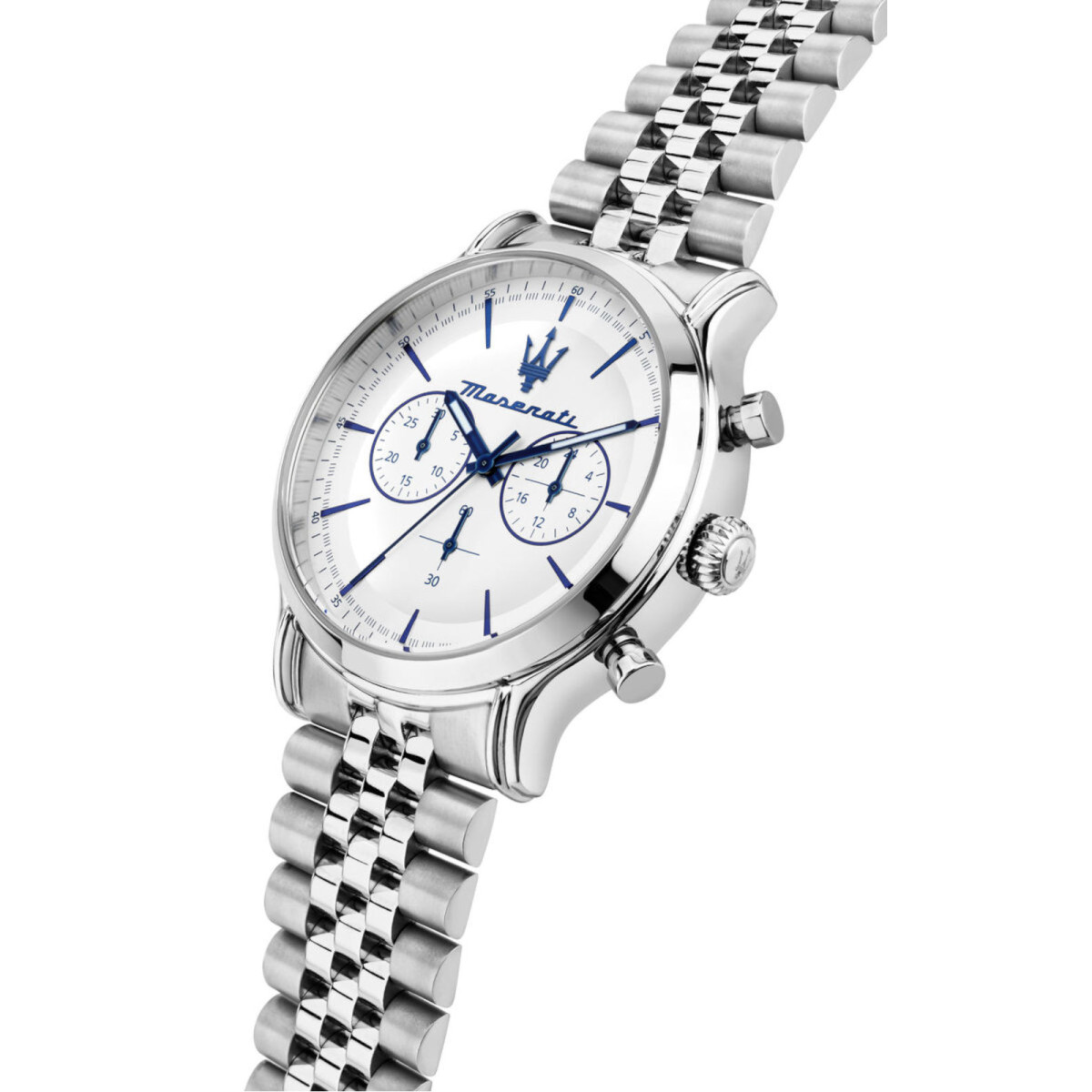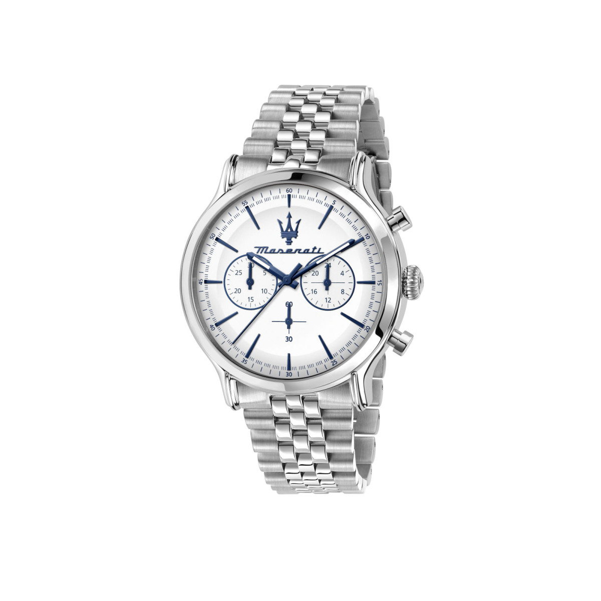 Ανδρικό ρολόι MASERATI διαμέτρου 42mm, με μηχανισμό QUARTZ χρονογράφου ακριβείας. Έχει άσπρο καντράν και ένδειξη ημερομηνίας. Η κάσα του είναι από ανοξείδωτο ατσάλι. Έχει μπρασελέ από ανοξείδωτο ατσάλι.