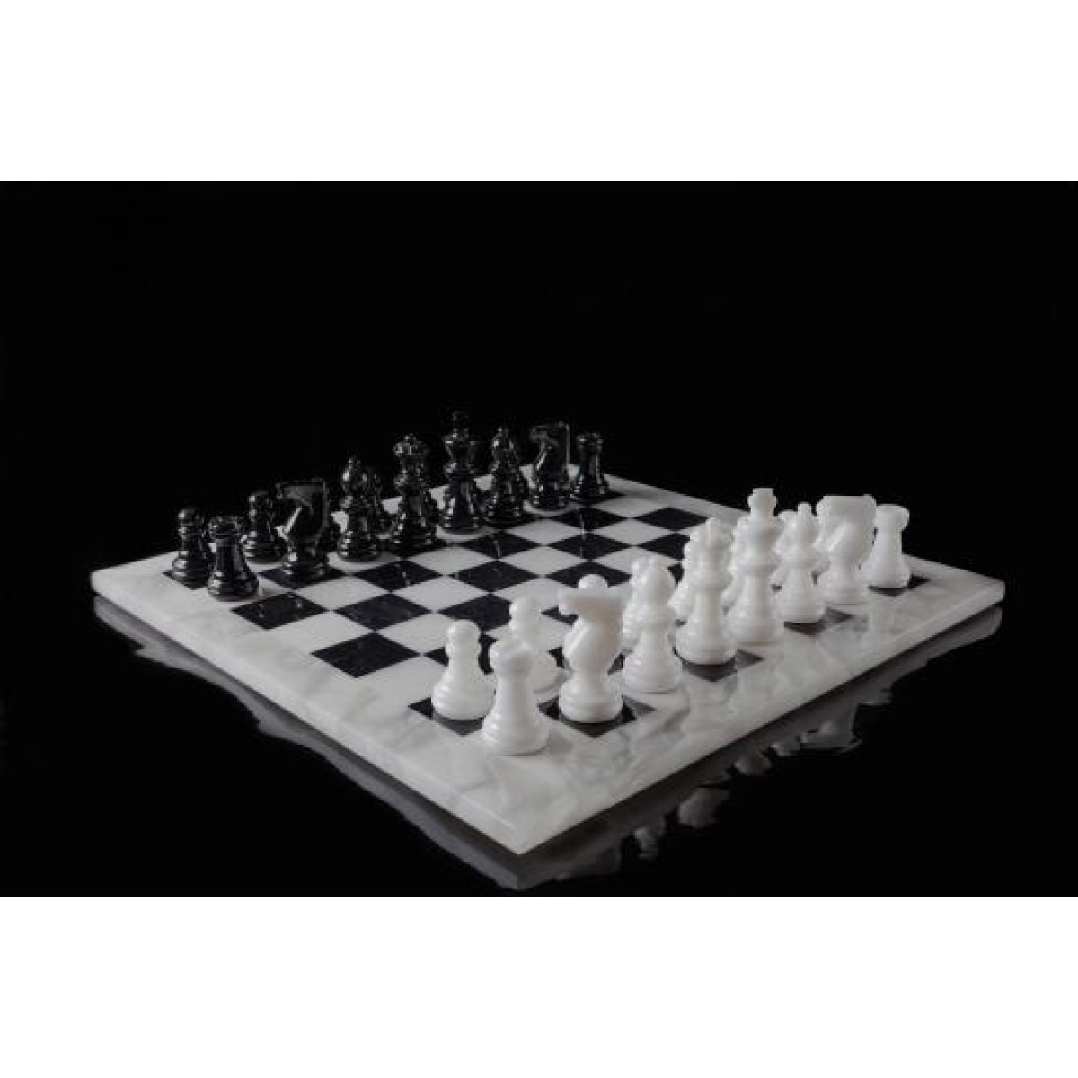 Επίπεδη σκακιέρα με πιόνια από αλάβαστρο σε χρώμα άσπρο-μαύρο.