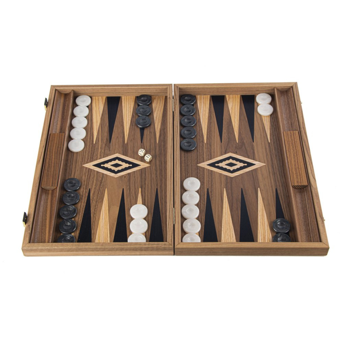 Το τάβλι αυτό είναι ένας συνδυασμός καρυδιάς με δρυ και μαύρα σημεία. Αυτό το τάβλι είναι χειροποίητο χρησιμοποιώντας την τέχνη της marqueterie για να σχηματίστουν διακοσμητικά σχέδια στο εσωτερικό του τάβλι.