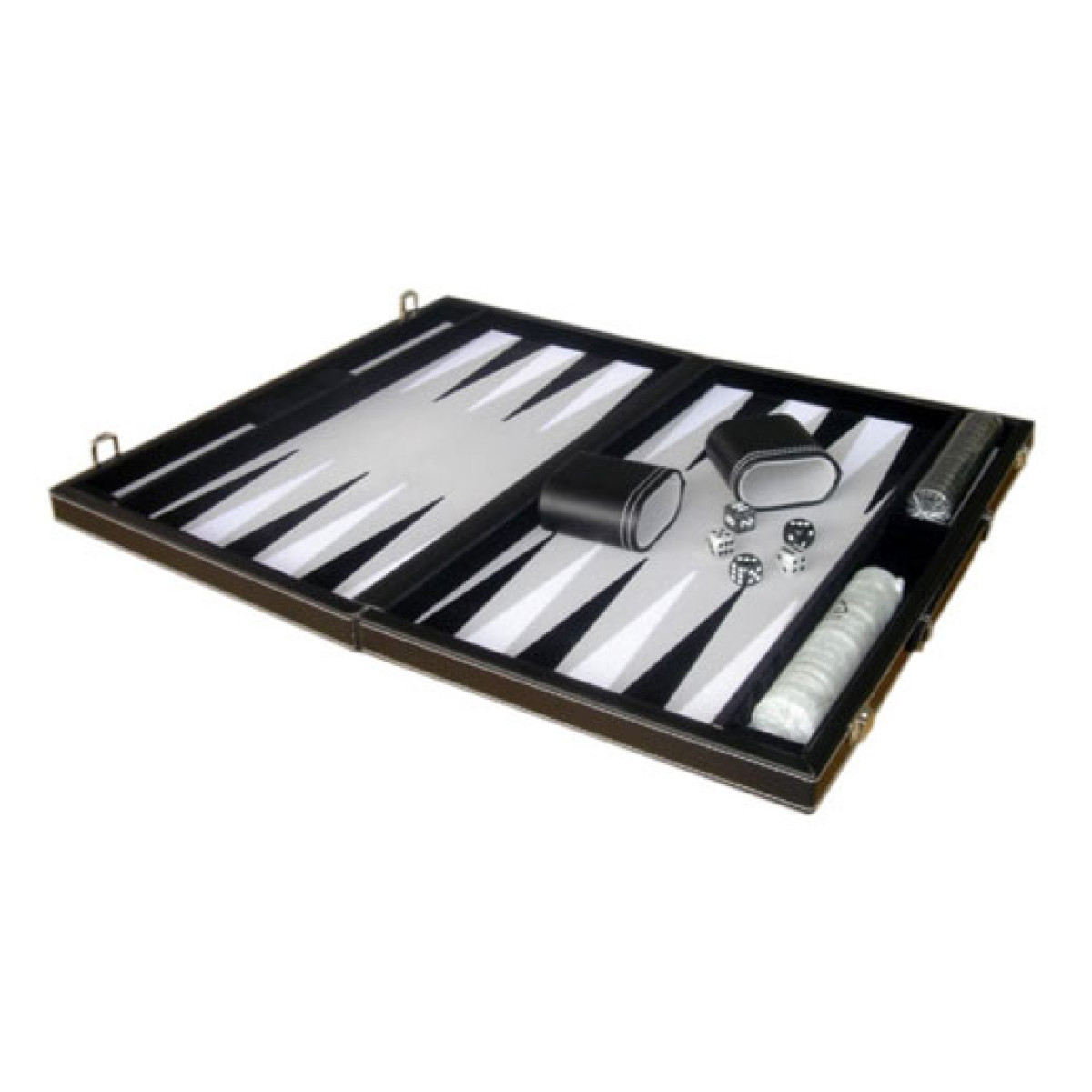 Τάβλι βαλίτσα δερματίνης πολυτελείας με πλάγιες θήκες για τα πούλια. Το εσωτερικό του έχει επένδυση ειδικό ύφασμα. Συνοδεύεται από ένα σετ πούλια τύπου φίλντισι, 4 ζάρια 15mm, ένα ζάρι διπλασιασμού 15mm, και δύο κουπάκια ζαριών. Μέγεθος πλαισίου 38,3 x 23,1 cm