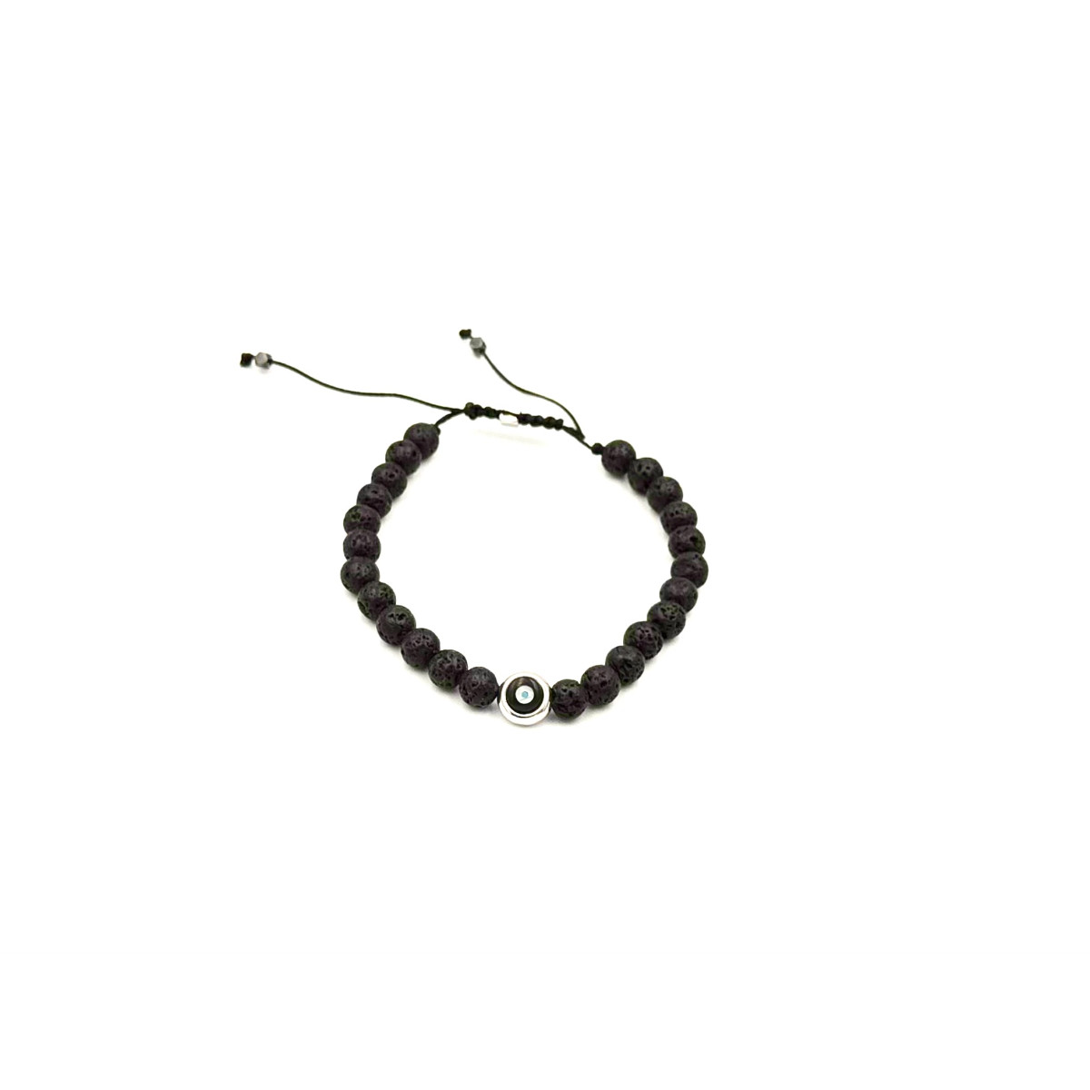 Χειροποίητο ασημένιο ανδρικό βραχιόλι με ημιπολύτιμους λίθους. Λάβα. Αυξομείωση μεγέθους.