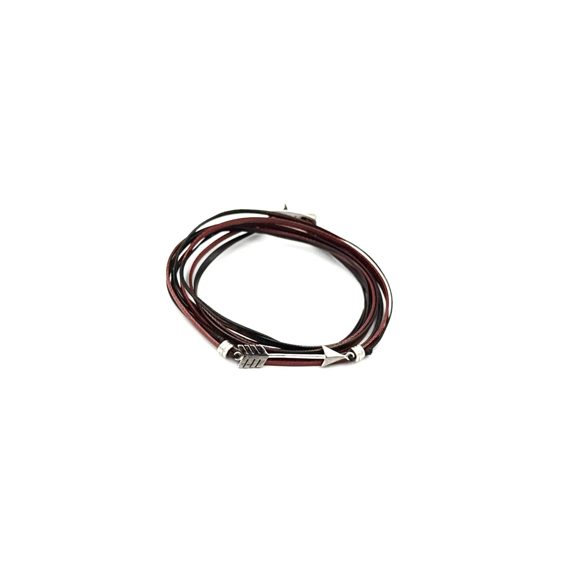 Χειροποίητο ανδρικό βραχιόλι από ασήμι και από κόκκινα και μαύρα κορδόνια. Αυξομείωση μεγέθους.