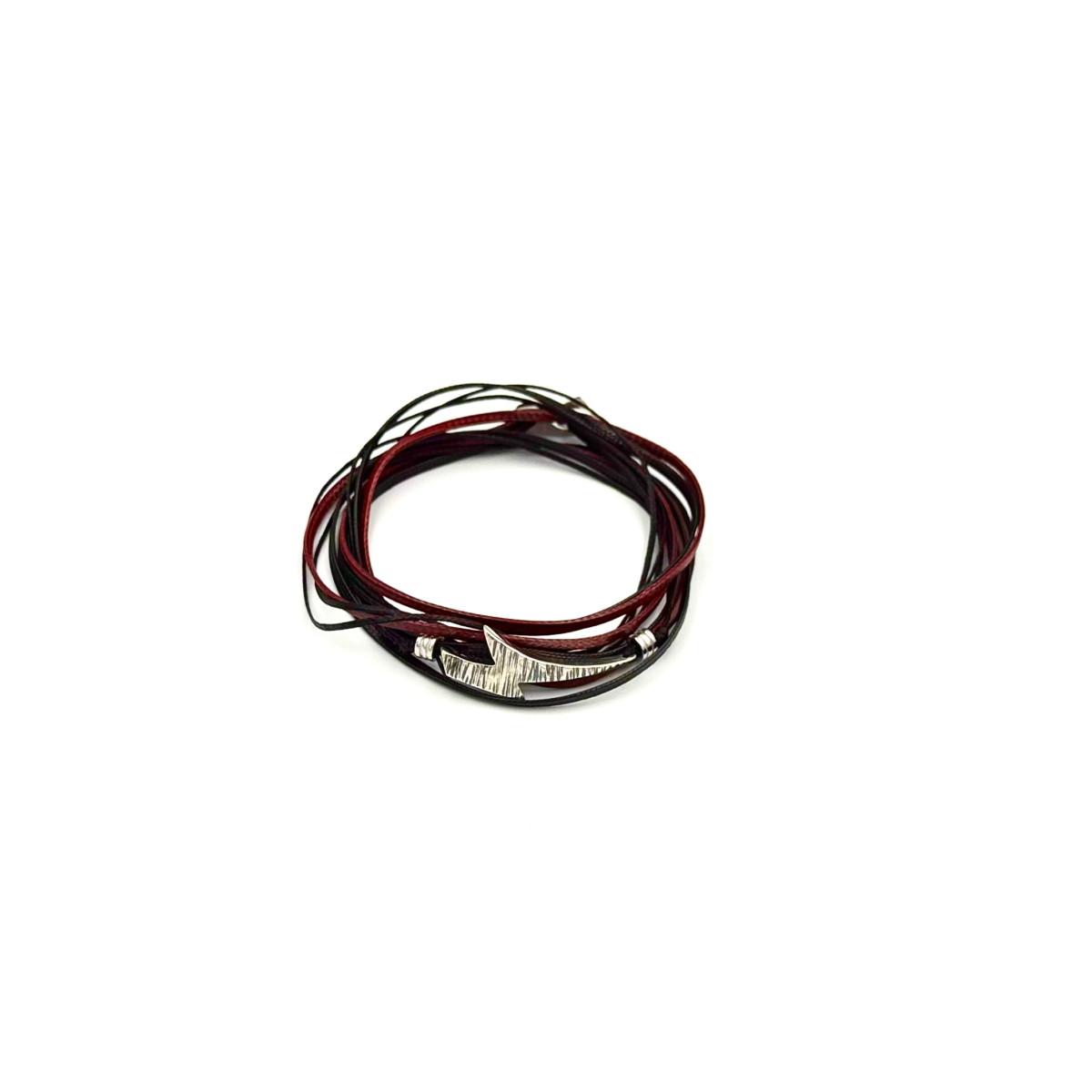 Χειροποίητο ανδρικό βραχιόλι από ασήμι και από κόκκινα και μαύρα κορδόνια. Αυξομείωση μεγέθους.