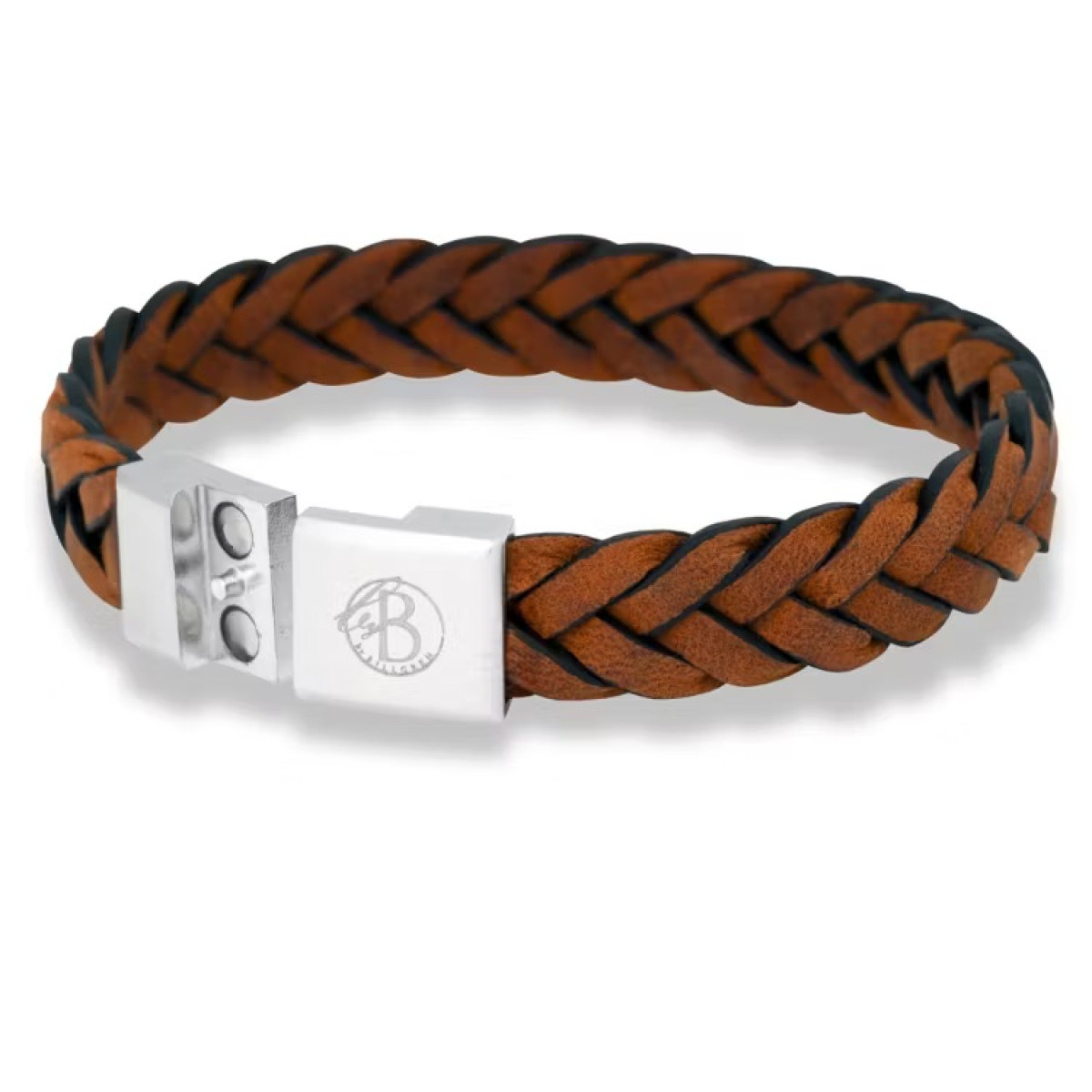 Ανδρικό βραχιόλι με μαύρο δέρμα και λεπτομέρειες από ανοξείδωτο ατσάλι.