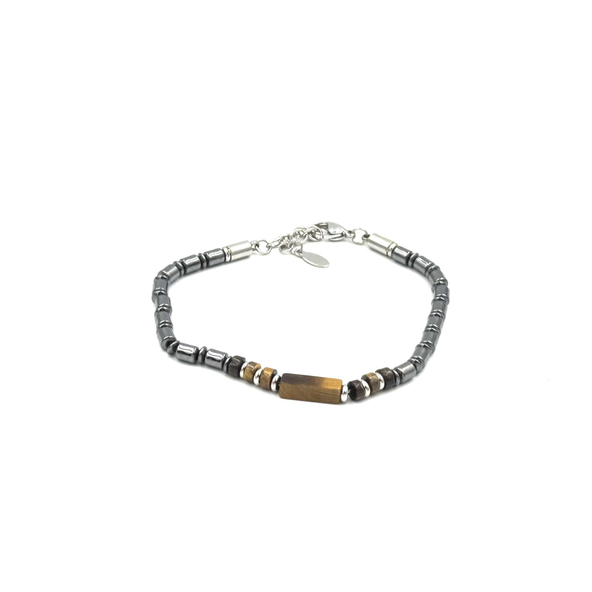 Ανδρικό βραχιόλι από ανοξείδωτο ατσάλι και ημιπολύτιμους λίθους. Αυξομείωση μεγέθους.