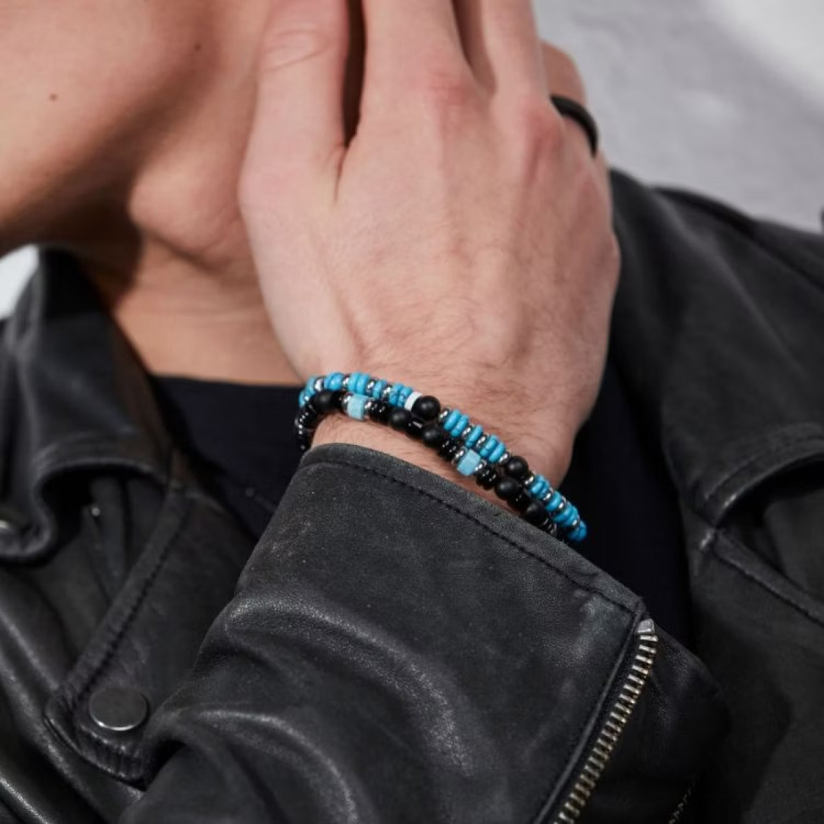 Ανδρικό βραχιόλι από ανοξείδωτο ατσάλι και ημιπολύτιμους λίθους.