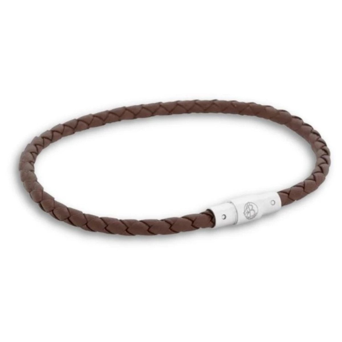 Ανδρικό βραχιόλι με καφέ δέρμα και λεπτομέρειες από ανοξείδωτο ατσάλι.