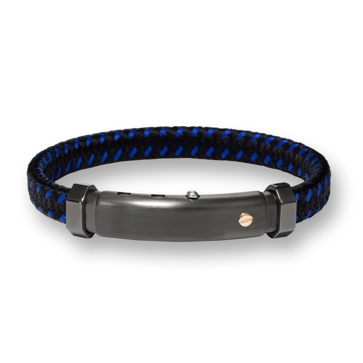 Ανδρικό βραχιόλι από ατσάλι, μαύρο-μπλε ναυτικό κορδόνι και λεπτομέρειες από χρυσό k18. Αυξομείωση μεγέθους.- Κατασκευαστής: BORSARI