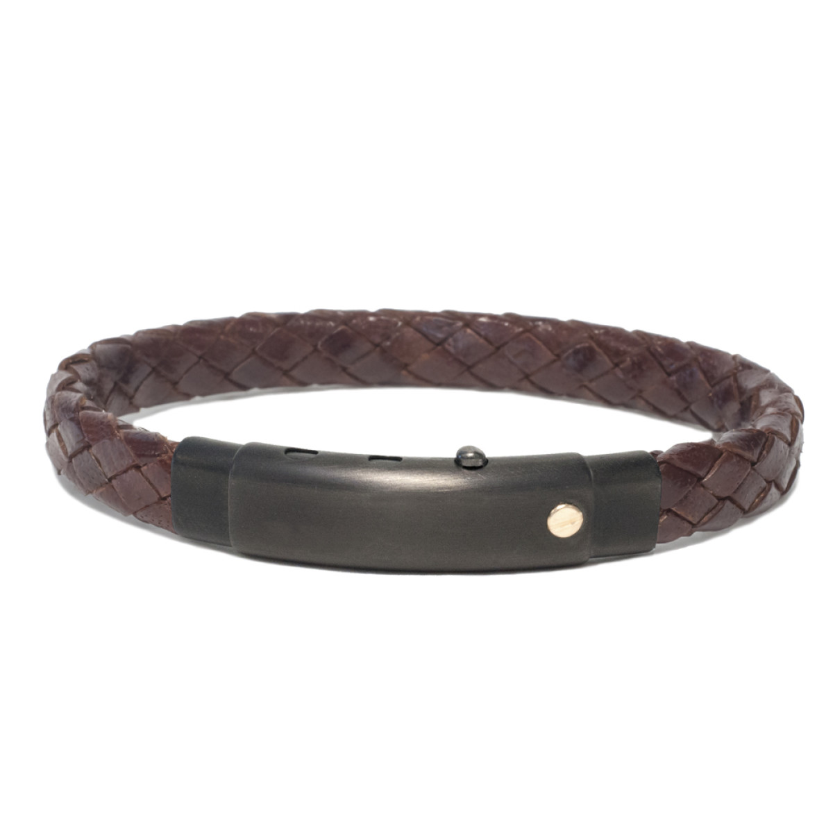 Ανδρικό βραχιόλι από ατσάλι και καφέ δέρμα με λεπτομέρειες από χρυσό k18. Αυξομείωση μεγέθους.
