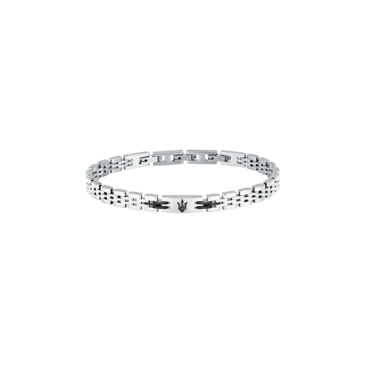 Ανδρικό βραχιόλι MASERATI από ανοξείδωτο ατσάλι. To βραχιόλι είναι ασημένιου και μαύρου χρώματος και έχει το λογότυπο της εταιρείας. Αυξομείωση μεγέθους.- Κατασκευαστής: MASERATI