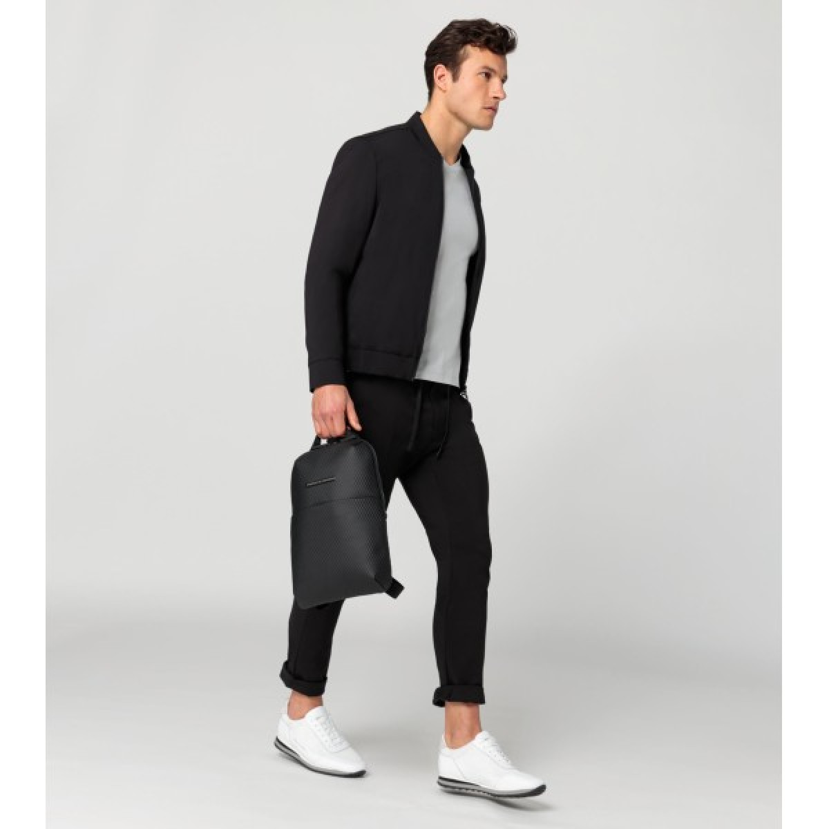 Με τον μινιμαλιστικό, κομψό σχεδιασμό πλήρως μαύρο και το υψηλής ποιότητας κυψελωτό υλικό, η σειρά Studio κάνει μια σαφή δήλωση. Το συμπαγές backpack είναι τέλειο για την καθημερινή ζωή και τις μετακινήσεις. Η ευρύχωρη κύρια θήκη του με μια θήκη με φερμουάρ και μια ακόμα θήκη, καθώς και θήκες για φορητούς υπολογιστές και μια θήκη στο μπροστινό μέρος προσφέρουν άφθονο αποθηκευτικό χώρο για όλα τα απαραίτητα. Υπάρχει επίσης μια ξεχωριστή μικρή θήκη που μπορεί να συνδεθεί σε έναν από τους ιμάντες ώμου σε ελάχιστο χρόνο χάρη στον προσαρτημένο δακτύλιο – ιδανικό για την αποθήκευση μικρότερων αντικειμένων, όπως AirPods ή κλειδιά. Ο κύριος χώρος κλείνει χρησιμοποιώντας ένα εντυπωσιακό φερμουάρ Porsche Design διπλής κατεύθυνσης. Το μπροστινό μέρος κοσμείται με το έμβλημα Porsche Design. Το σακίδιο πλάτης είναι πάντα άνετο στη μεταφορά χάρη στους ρυθμιζόμενους ιμάντες με επένδυση και τη λαβή.