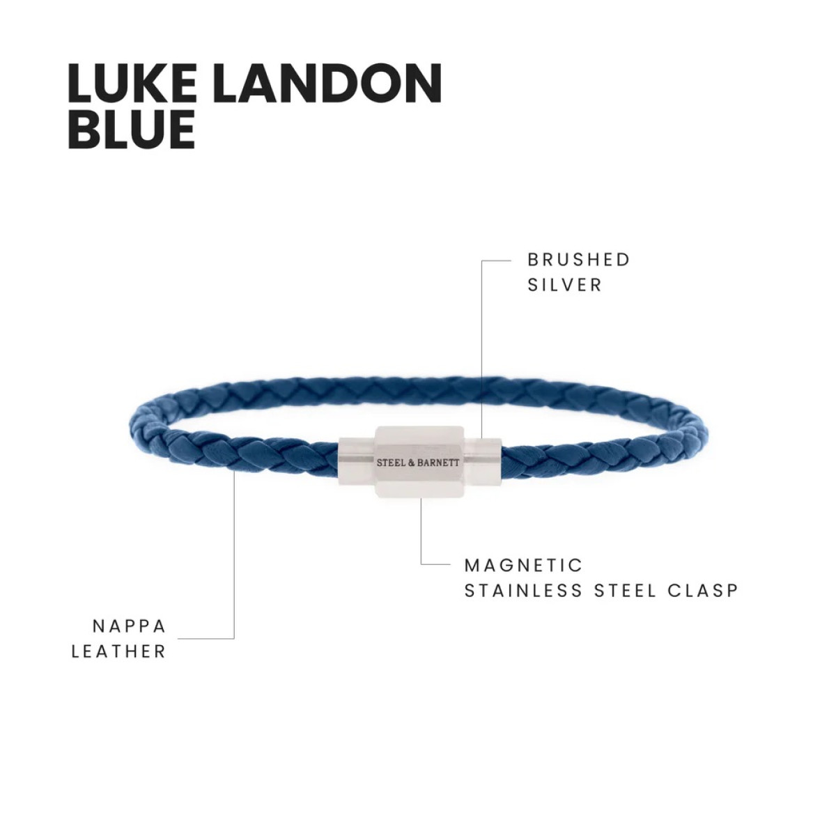 Ανδρικό βραχιόλι με μπλε δέρμα και λεπτομέρειες από ανοξείδωτο ατσάλι.