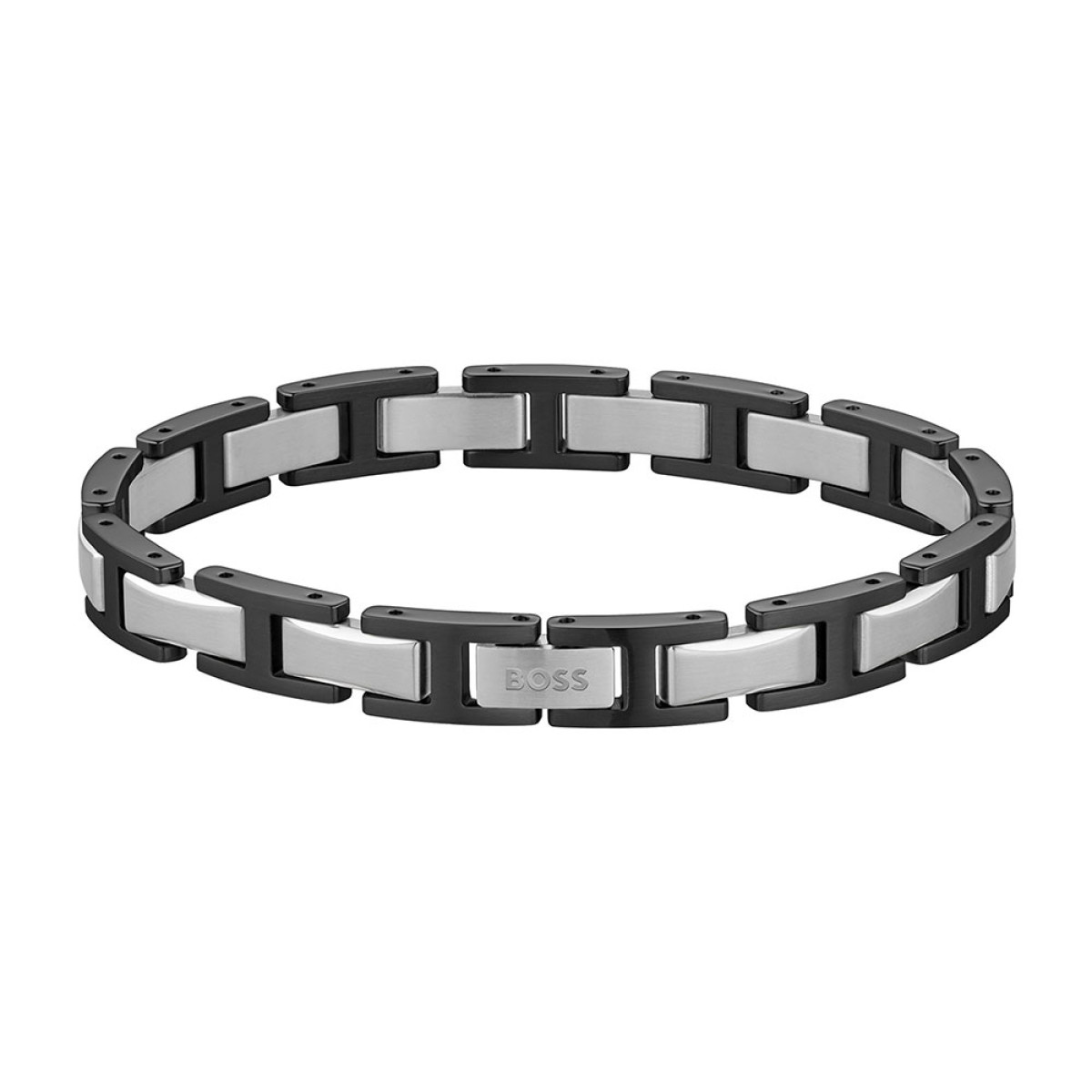 Βραχιόλι ατσάλινο HUGO BOSS με μαύρες λεπτομέρειες.