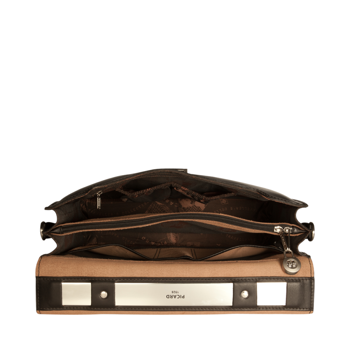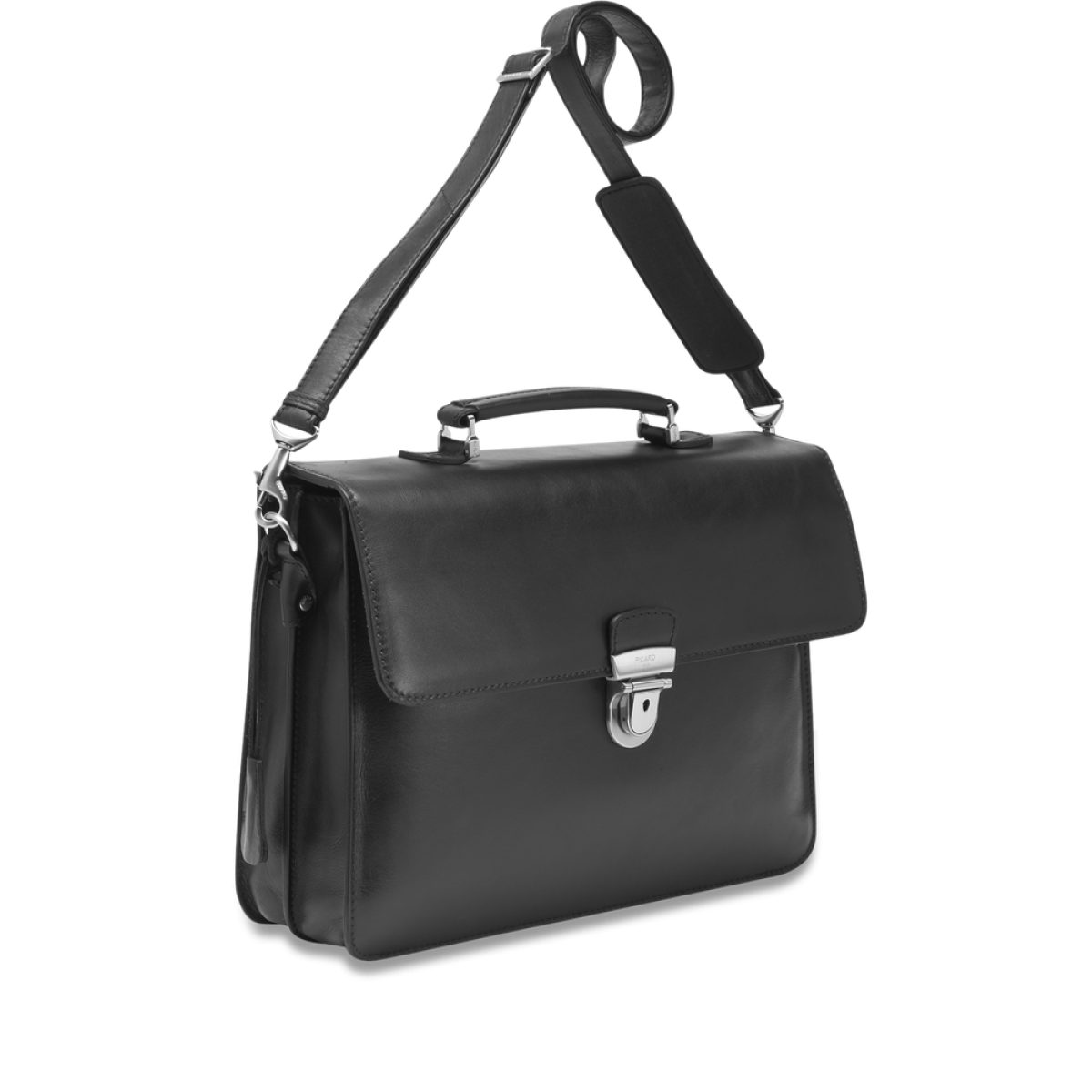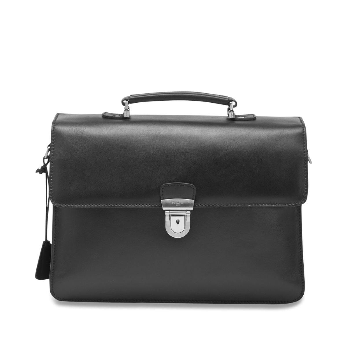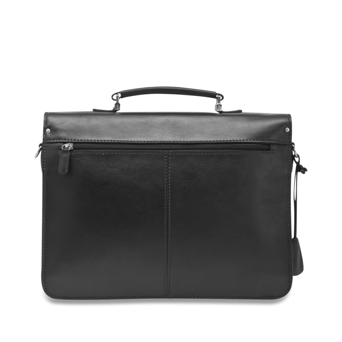 Διαχρονικός κομψός χαρτοφύλακας σε μαύρο χρώμα με αρκετό χώρο για: φορητό υπολογιστή, αρχεία και άλλα έγγραφα. Το καθαρό σχήμα συνδυάζεται με δέρμα υψηλής ποιότητας.
