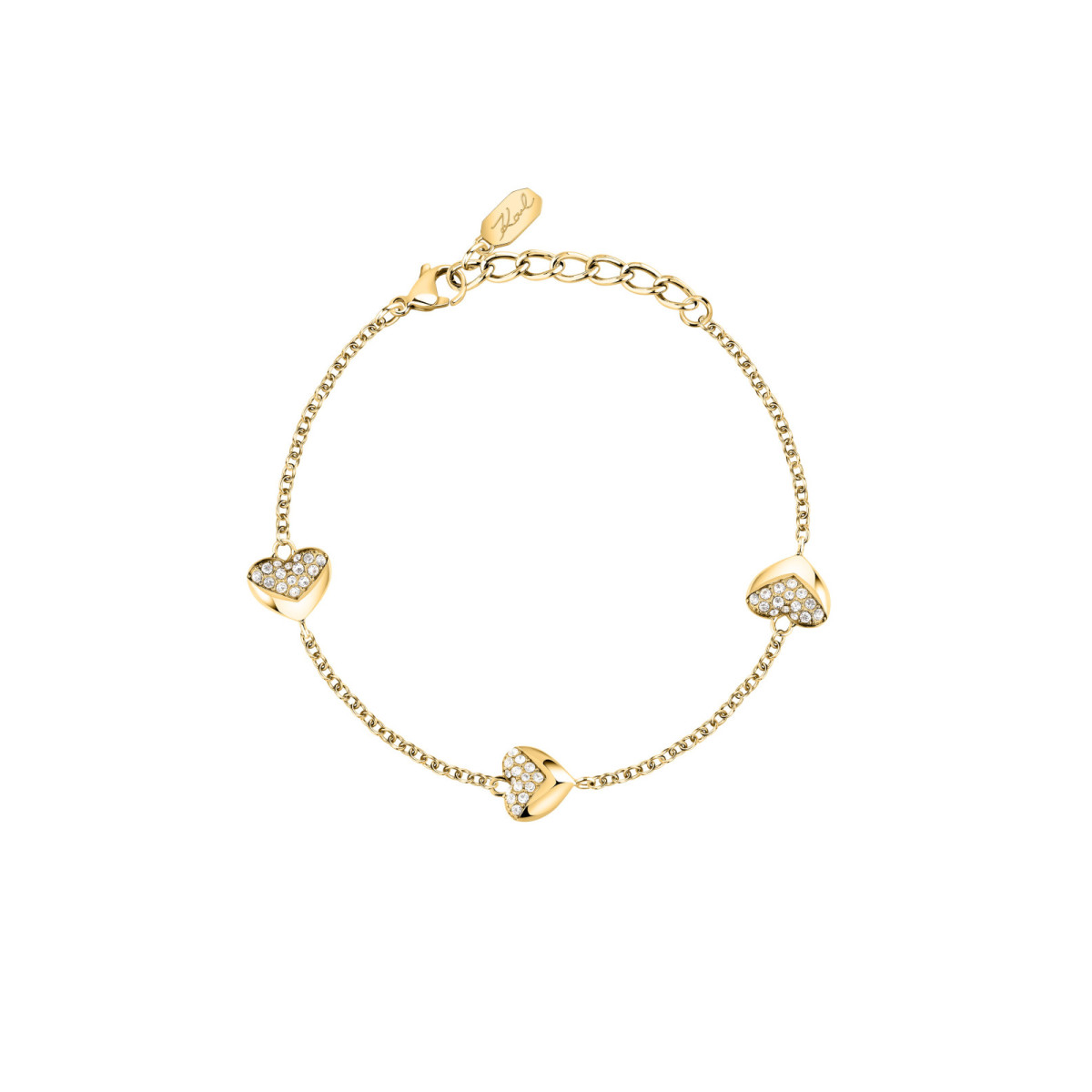 Γυναικείο βραχιόλι KARL LAGERFELD χρυσού χρώματος. Είναι κατασκευασμένο από ανοξείδωτο ατσάλι και είναι διακοσμημένο με καρδιές με πέτρες(17+3cm).