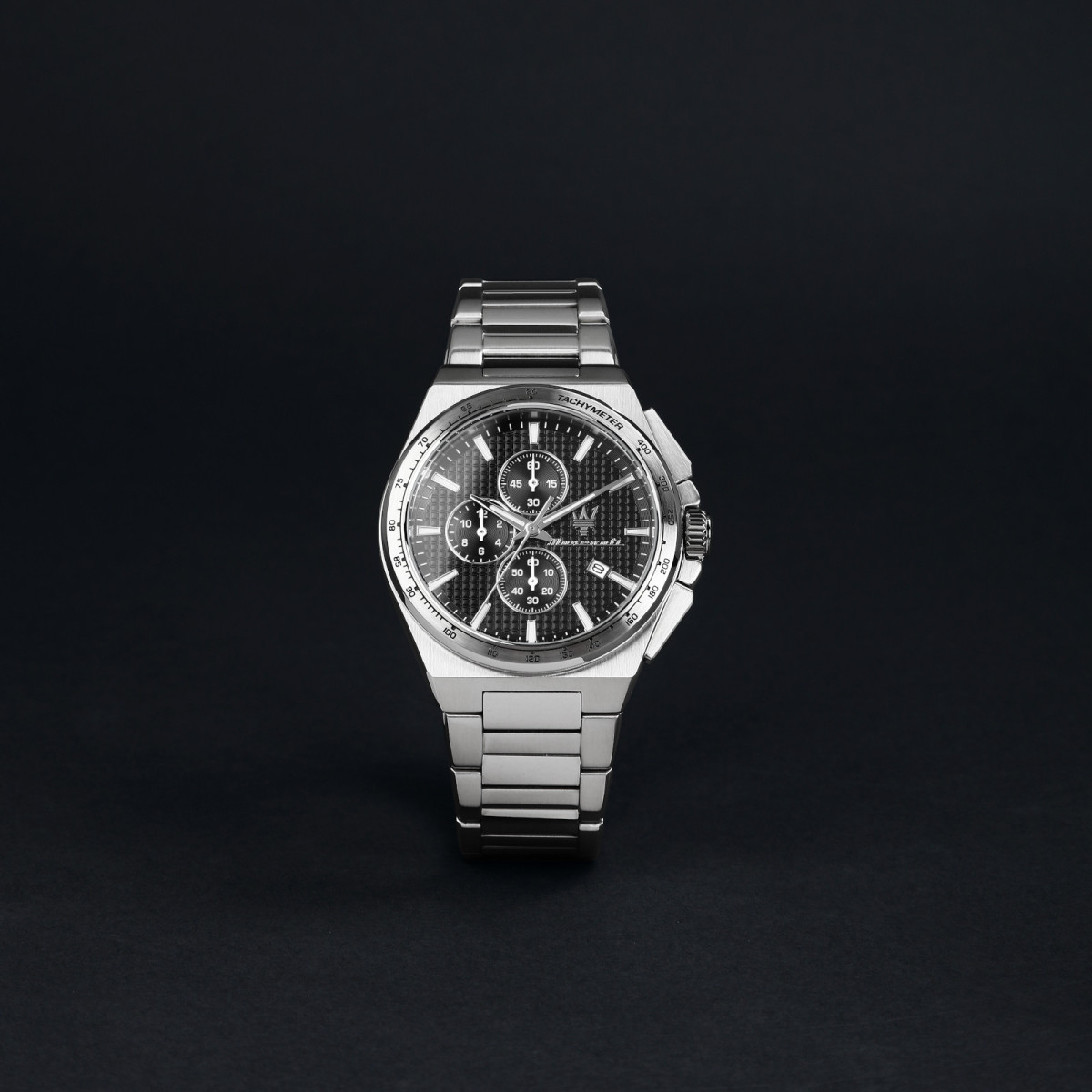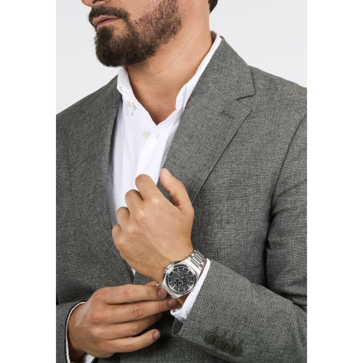 Ανδρικό ρολόι διαμέτρου 41mm με μηχανισμό QUARTZ χρονογράφου ακριβείας. Έχει μαύρο καντράν. Η κάσα του είναι από ανοξείδωτο ατσάλι και κρύσταλλο από ορυκτό κρύσταλλο ειδικής σκλήρυνσης. Έχει μπρασελέ από ανοξείδωτο ατσάλι και κούμπωμα ασφαλείας.