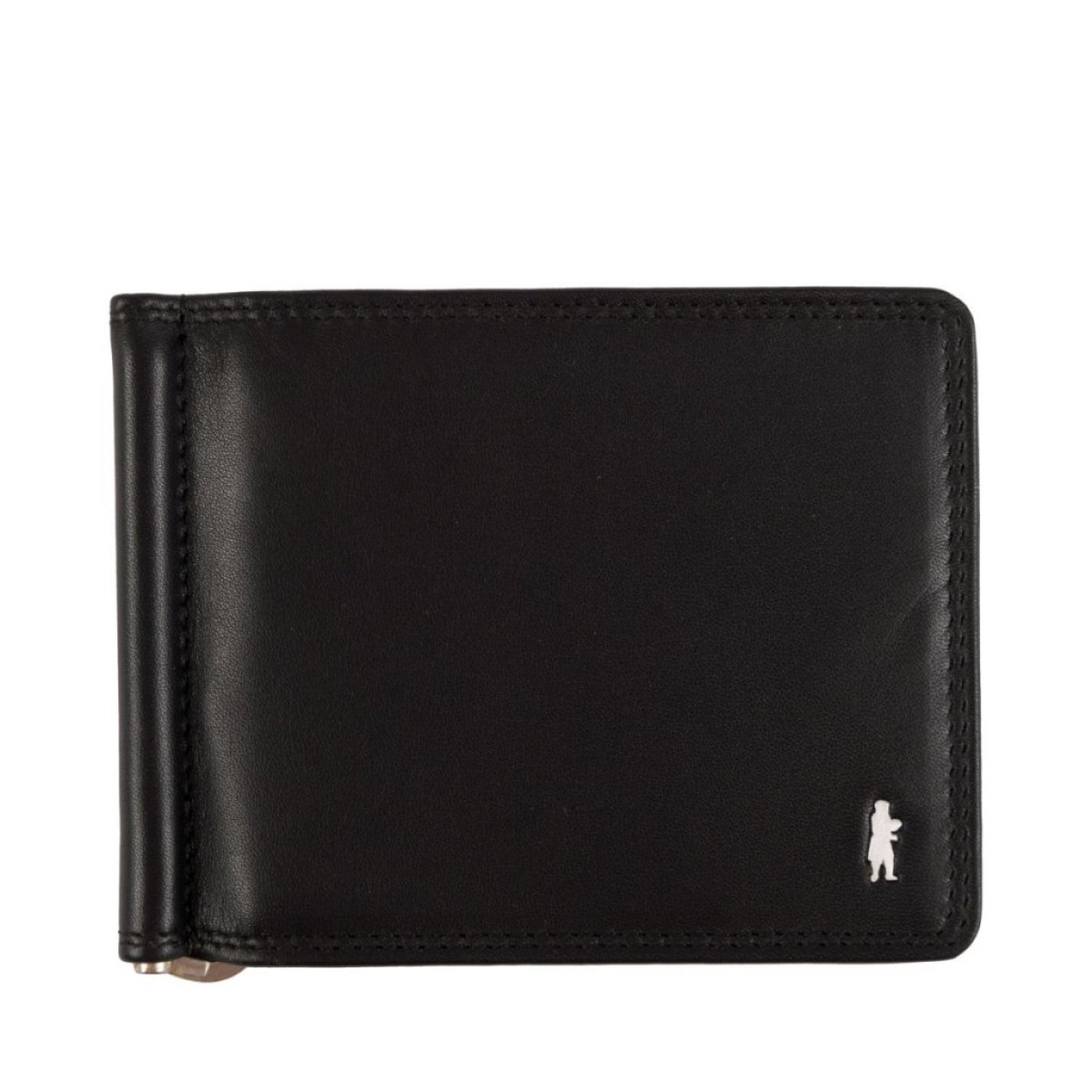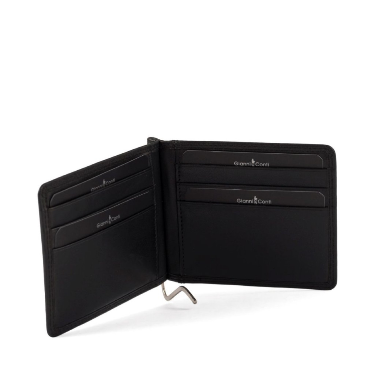 Μαύρο δερμάτινο ανδρικό πορτοφόλι με 6 θέσεις πιστωτικών καρτών, υποδοχή για χαρτονομίσματα με clip, 2 επιπλέον χώρους και 1 θήκη εξωτερική. Κατασκευάζεται στην Ιταλία.