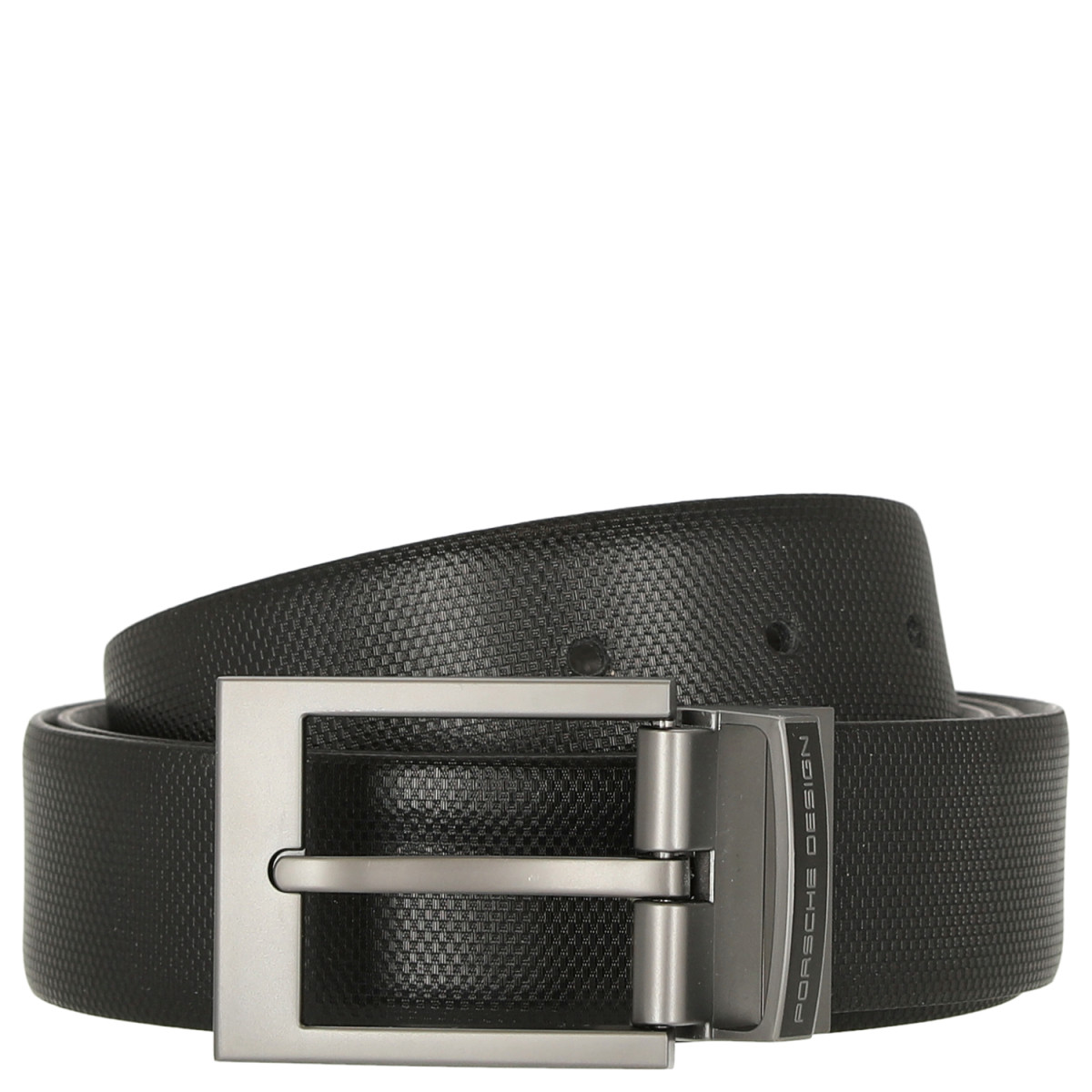 Stylish statement: Η Porsche Design ζώνη προσθέτει κάτι παραπάνω στην επαγγελματική εμφάνιση και τα κομψά ντυσίματα. Η αγκράφα σε ματ σχέδιο από τιτάνιο συνδυάζεται με δερμάτινη ζώνη διπλής όψης πλάτους 35 mm με ανάγλυφο μαύρο και λείο μαύρο δέρμα. Το κούμπωμα μπορεί εύκολα να αφαιρεθεί για να κοντύνει εάν είναι απαραίτητο, διαθέτει μηχανισμό για την αλλαγή χρώματος. Σχεδιασμένο και κατασκευασμένο στην Αυστρία.