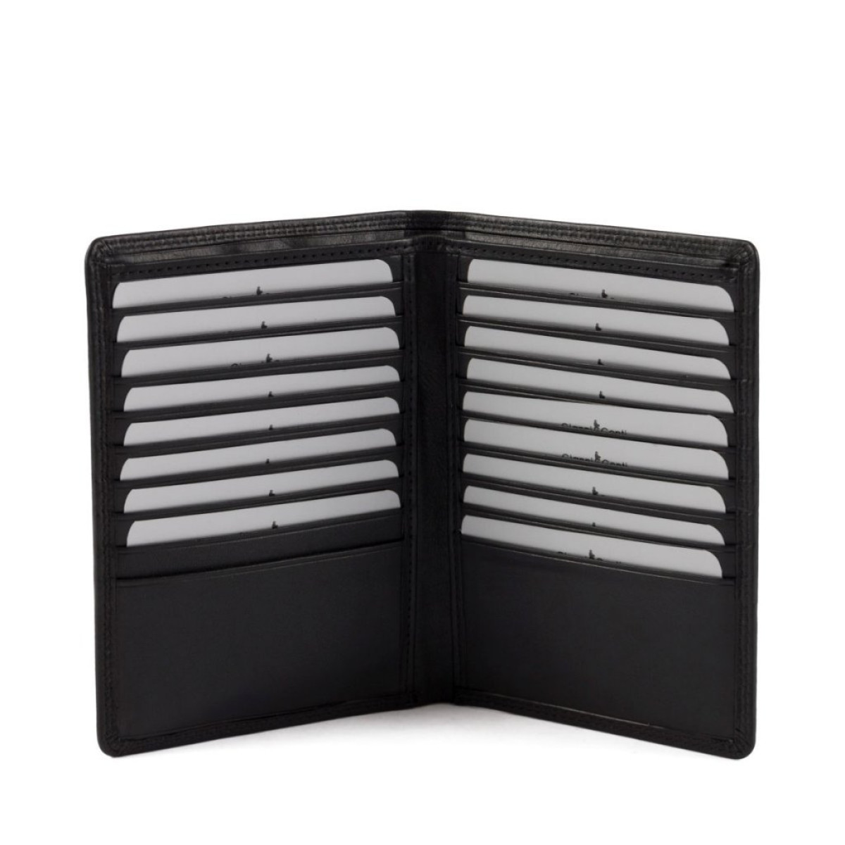 Μαύρο δερμάτινο ανδρικό πορτοφόλι με 18 θέσεις πιστωτικών καρτών, 1 χώρο για χαρτονομίσματα και 2 επιπλέον χώρους. Ιδανικό για όσους θέλουν να έχουν τη ταυτότητα στο πορτοφόλι τους. Κατασκευάζεται στην Ιταλία.