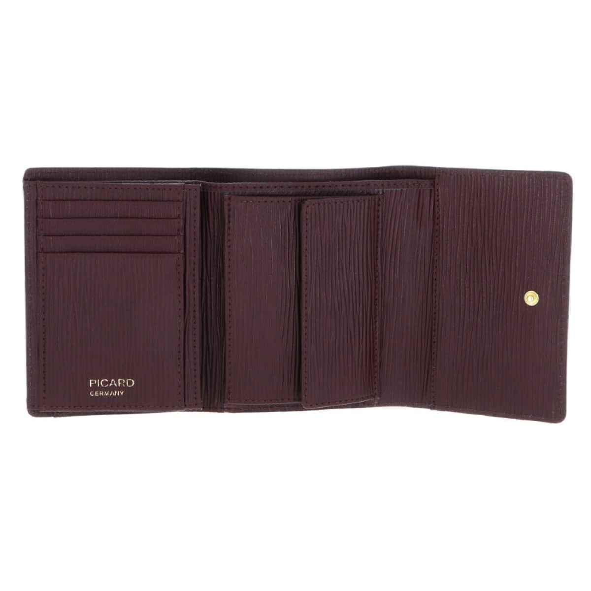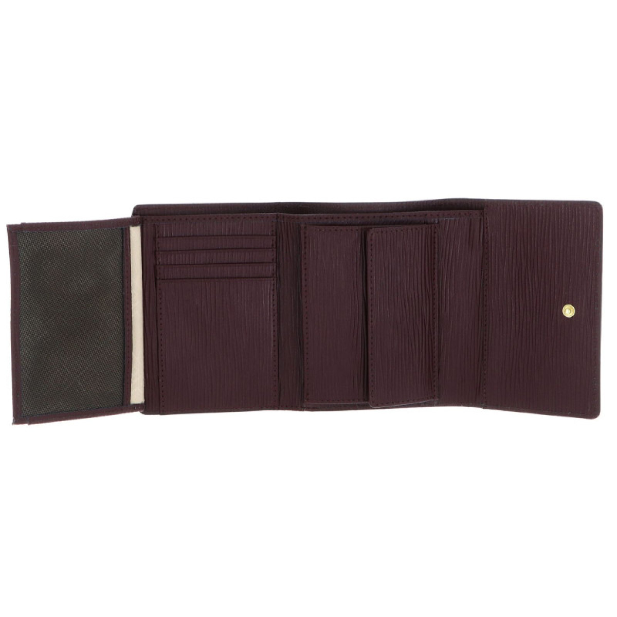 Μπορντώ δερμάτινο πορτοφόλι με 8 θέσεις πιστωτικών καρτών, 4 κρυφές θέσεις πιστωτικών καρτών, 2 χώρους για χαρτονομίσματα, 3 επιπλέον χώρους, 1 θήκη με διαφάνεια και 1 θήκη για κέρματα. Μπορεί να χωρέσει ελληνική ταυτότητα.