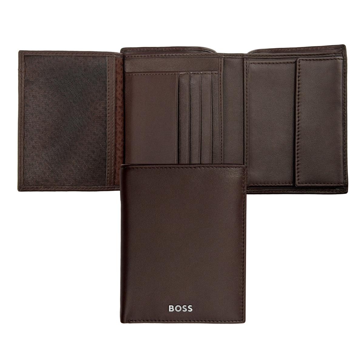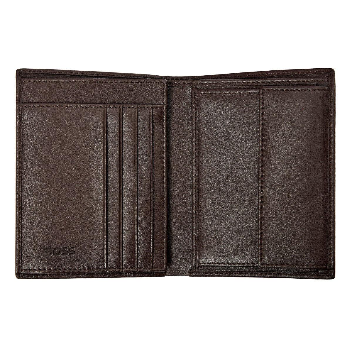 Δερμάτινο HUGO BOSS ανδρικό πορτοφόλι σε καφέ χρώμα με 8 θέσεις πιστωτικών καρτών, 2 χώρους για χαρτονομίσματα, 1 θήκη με διαφάνεια ,θήκη για κέρματα και 4 επιπλέον χώρους.