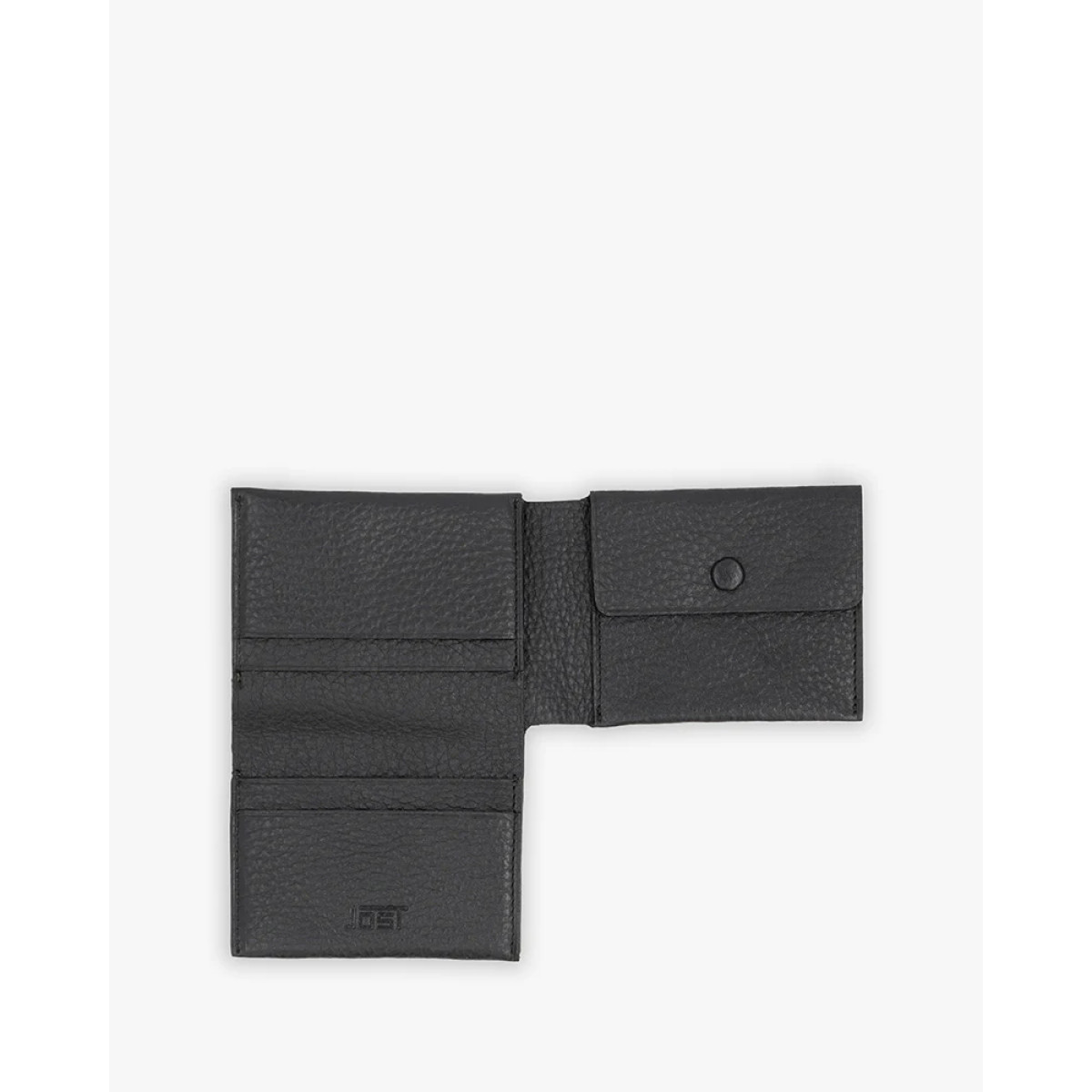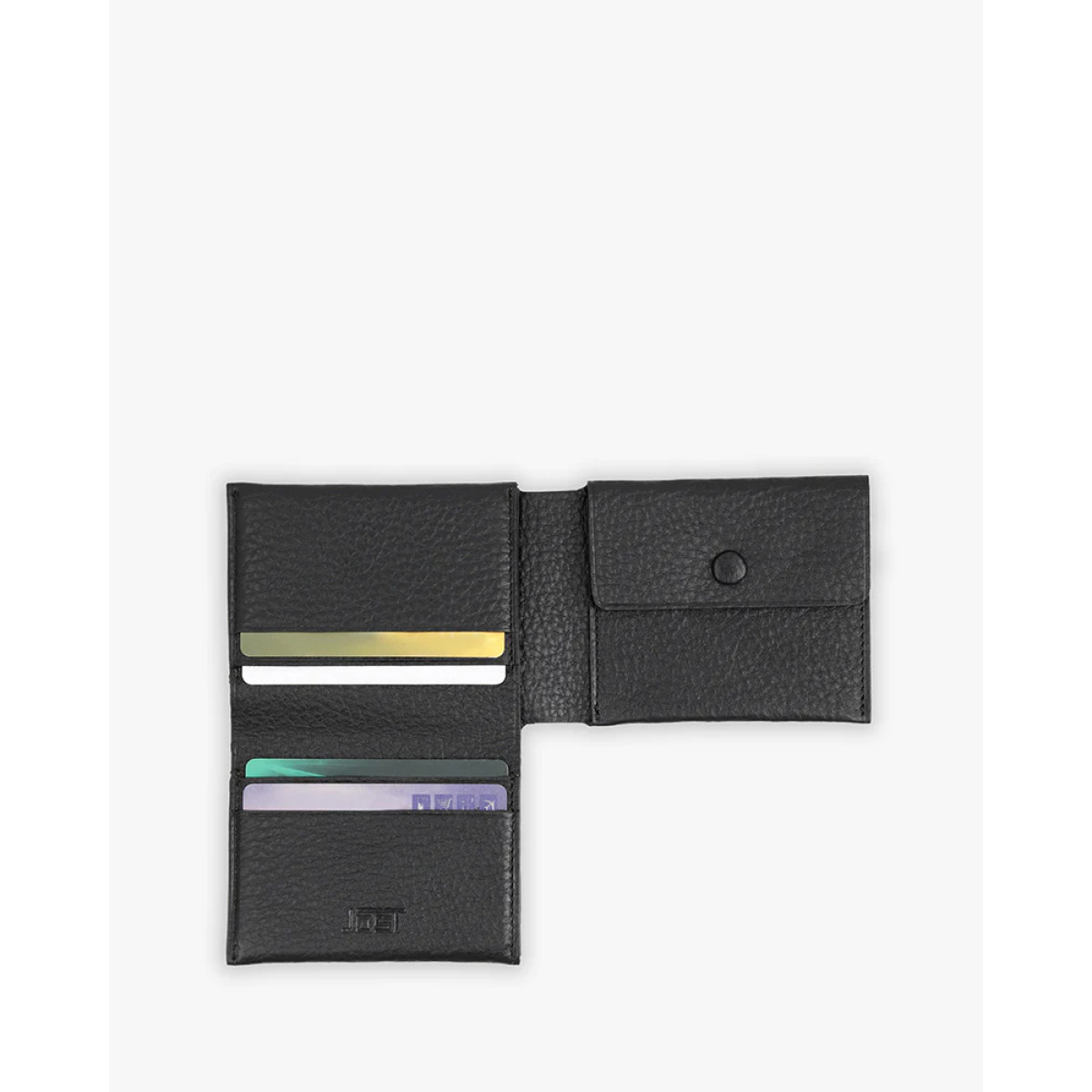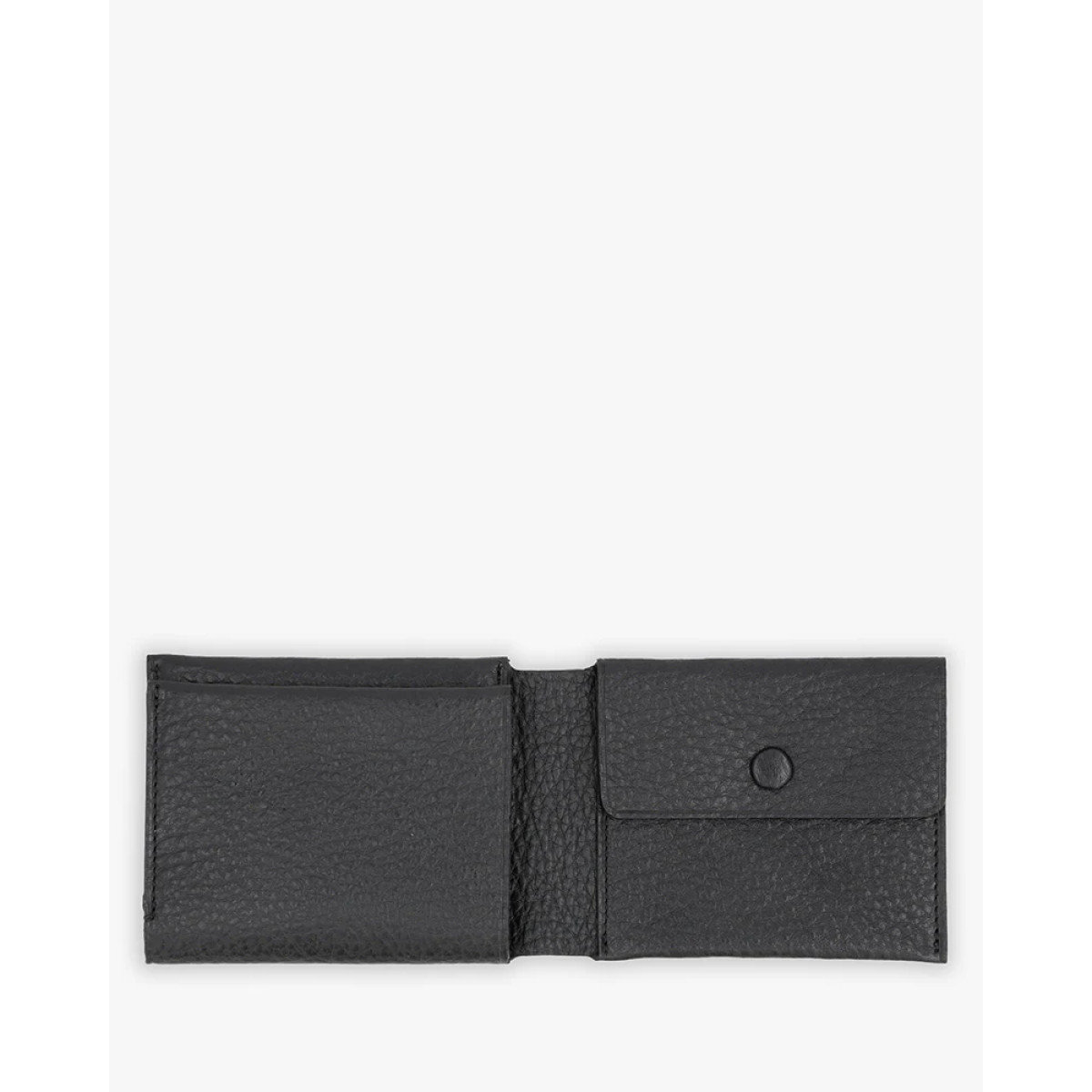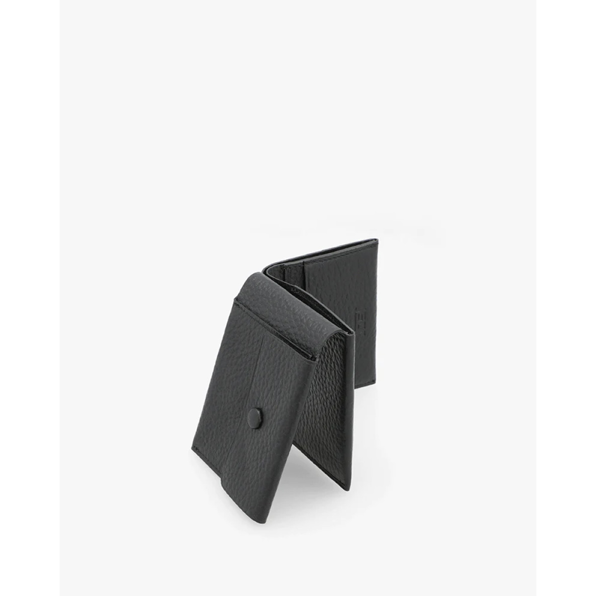 Μαύρο δερμάτινο ανδρικό πορτοφόλι με 4 θέσεις πιστωτικών καρτών, 1 χώρος για χαρτονομίσματα και θήκη για κέρματα.