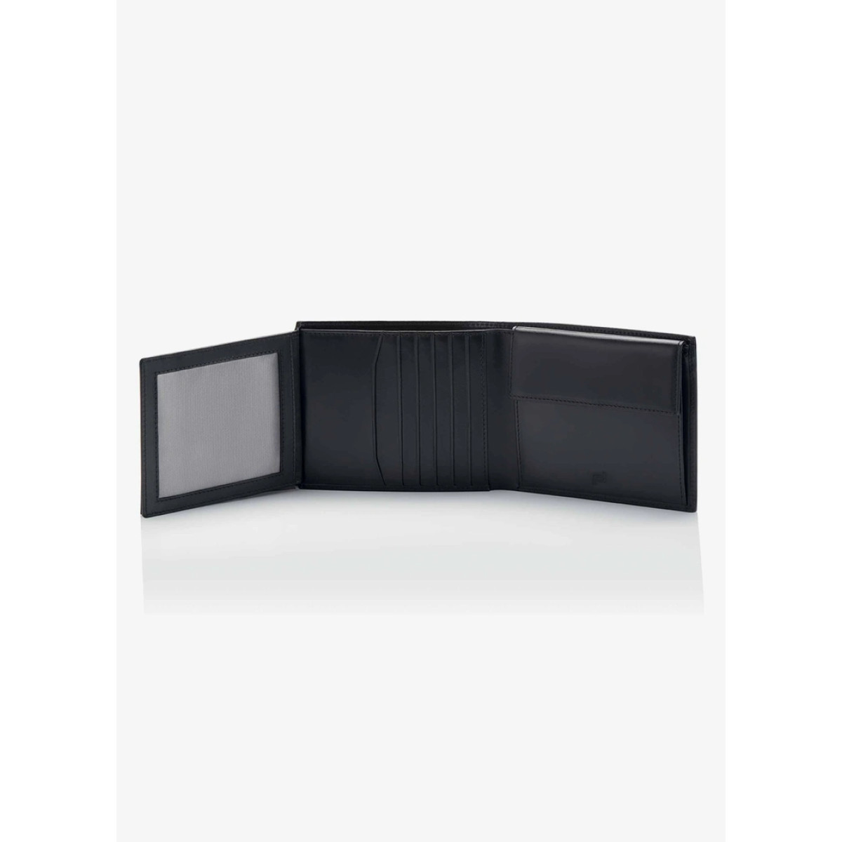 Δερμάτινο ανδρικό πορτοφόλι σε μαύρο χρώμα με 10 θέσεις πιστωτικών καρτών, 2 χώρους για χαρτονομίσματα, θήκη για κέρματα, 1 θήκη με διαφάνεια και 3 επιπλέον χώρους. Επίσης διαθέτει προστασία RFID (αποτροπή ηλεκτρονικής κλοπής δεδομένων και μη εξουσιοδοτημένων συναλλαγών πιστωτικής κάρτας). Ιδανικό για όσους θέλουν να έχουν τη ταυτότητα στο πορτοφόλι τους.