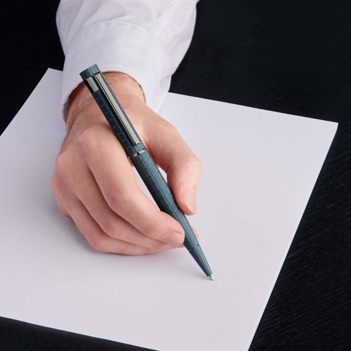 Στυλό διαρκείας με περιστρεφόμενο μηχανισμό σε σκούρο μπλε μέταλλο. Η σειρά γραφής LOOP συνδυάζει δυναμικό και μοντέρνο σχεδιασμό για κορυφαία εμπειρία γραφής. Στη νέα αυτή έκδοση, εμπνευσμένη από την Bauhaus, ένα εντυπωσιακό γεωμετρικό πλέγμα κοσμεί την επιφάνεια από αλουμίνιο. Ο συνδυασμός σχεδίου και υφής προσφέρει μια κομψή, γραφική ανατροπή, αναδεικνύοντας τη δυναμική φόρμα του στυλό. Υπογεγραμμένο με το λογότυπο Double B στην κορυφή.